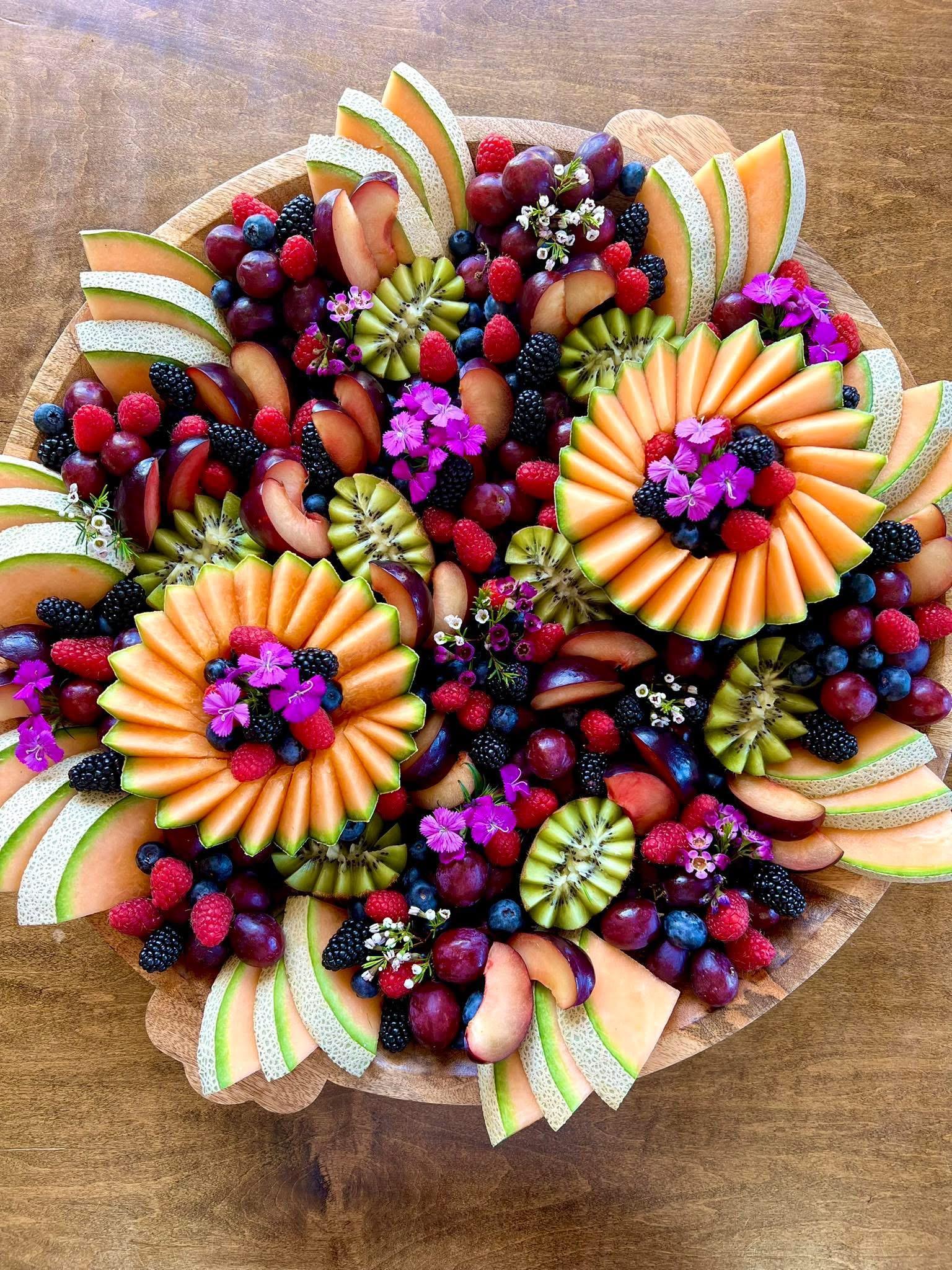Our grazing tables include… chicken salad croissants, dips, caprese salads, veggies, charcuterie, meat/cheese, crackers, fresh bread, fresh fruits(strawberries,grapes,berries, and more), sweet treats(cookies, macarons, and etc depending on your likes) nuts, salami roses, pasta salad and more! We would arrive 2 hours prior to set up a beautiful 3 dimensional grazing table and would come back at the end of your event or following morning to clean, remove and pack away leftovers if you would like and remove our dishes.