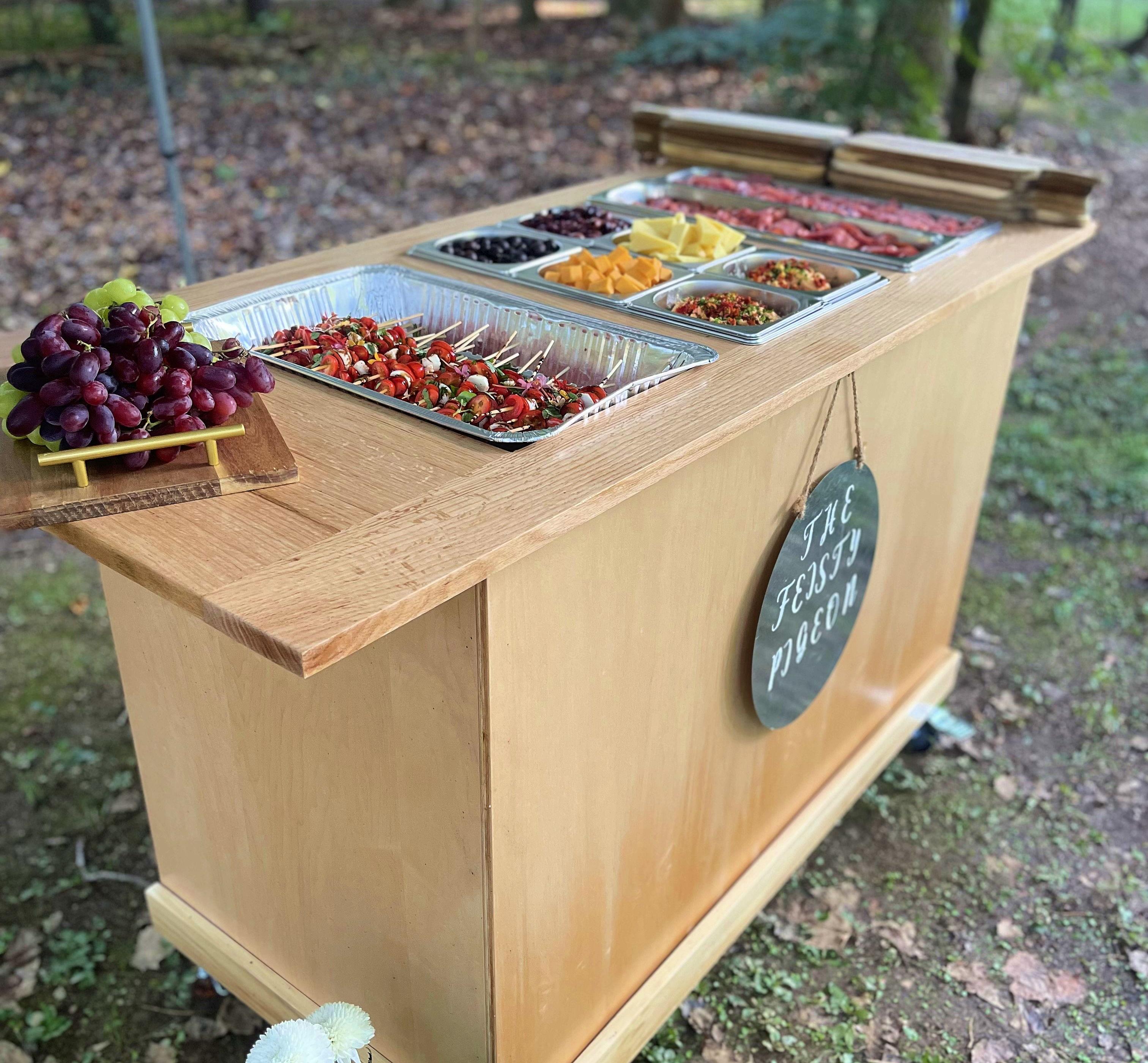 At The Feisty Pigeon exceptional events is our passion. Come to us or let us come to you! Our expert team is dedicated to crafting unforgettable food and beverage experiences tailored to your unique occasion. For off-site events we offer several services! Our Mobile charcuterie station or mobile bar is the perfect addition to any event. We also offer cold catering, charcuterie and grazing tables that are sure to wow your guests!