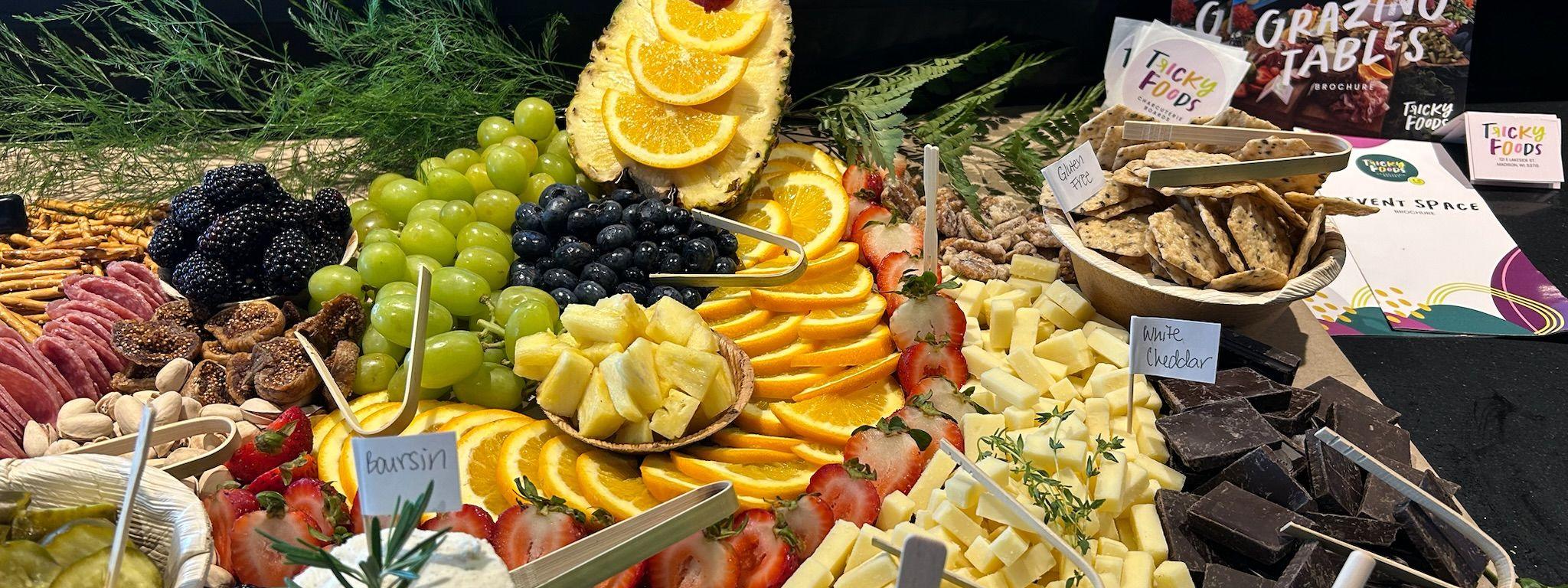 We hired Tricky Foods to set up a grazing table at our wedding reception and it was SUCH a hit - our guests loved it! The process was so easy, from initial consultation to booking to set up and clean up, the Tricky Foods team was so helpful, kind, and professional. I hope to host another event in the Madison area so I can book them again!