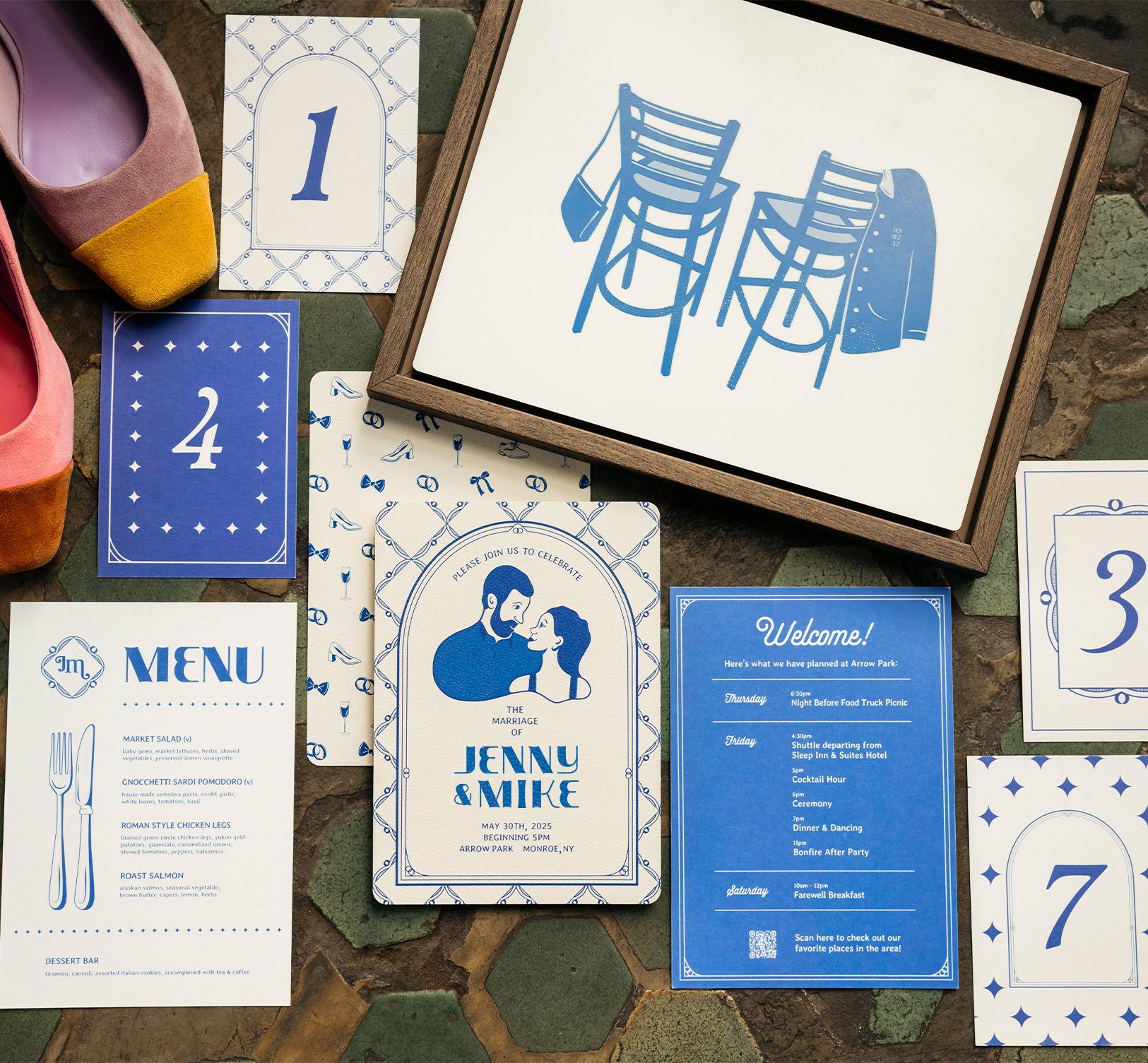 All designs come with a one-of-a-kind style guide made for you - think about it like you'd be getting your very own brand - this sets the foundation for all your wedding design pieces and ensures a cohesive look throughout. We can create ALL your designs and take away all of your printing stress, or you can just take the style guide and DIY the rest!
