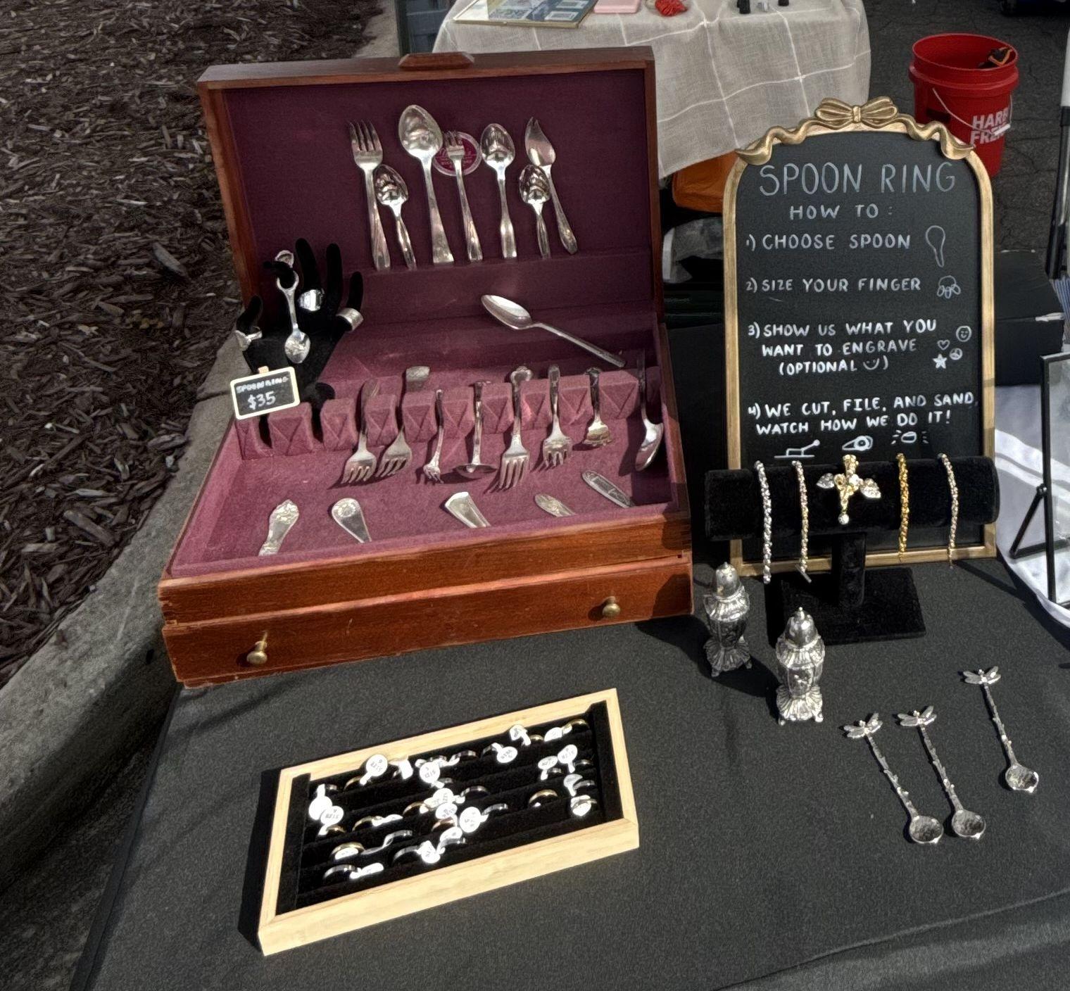 By Caxwest is a small, independently run jewelry business. Each spoon ring is handcrafted from vintage and heirloom silverware-materials that have already lived a life, now repurposed into something new. No two pieces are the same, and that's the beauty of it. Every ring carries its own history, just as every guest brings their own story. This work is a labor of love meant to be shared-transforming generations of artistry into something wearable to mark your day.