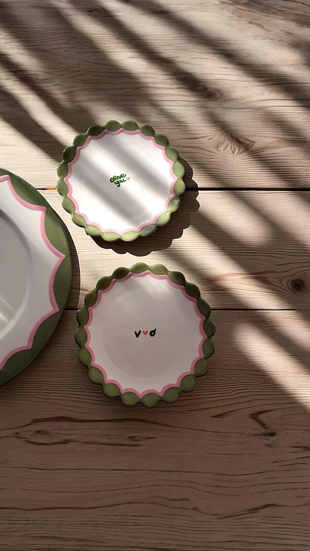 Custom serving pieces that pull your entire table together. Think trays, aperitivo bowls, ramekins, butter dishes, and small plates. All hand-painted and tailored to your exact color scheme. Each piece is made to feel cohesive, elevated, and completely personal, turning even the smallest details into part of the overall design.