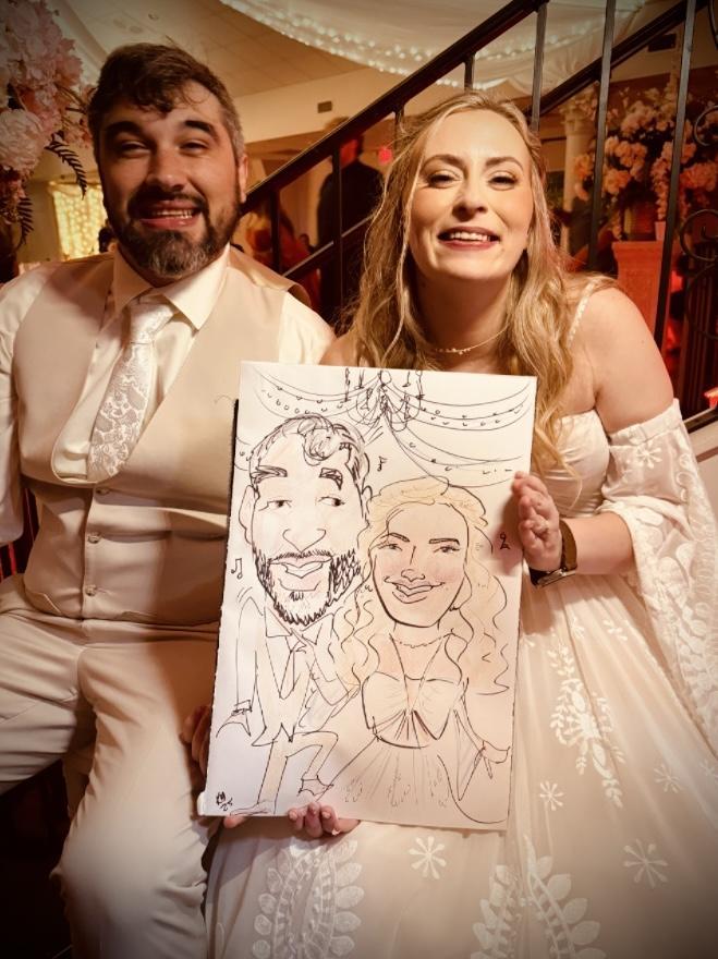 We had the absolute pleasure of having Caricatures By Kathy at our wedding, and she completely exceeded our expectations! Not only did she bring such a fun and unique element to our celebration, but she also went above and beyond to truly connect with our guests. She was intentional, engaging, and brought so much joy to everyone she interacted with. People are still raving about how incredible she was! Kathy made each guest feel special, and her sweet personality made the experience even more memorable. Every caricature was done in the most flattering and thoughtful way—she made sure everyone looked their best while capturing their unique personalities. Through her incredible talent and warm presence, we were able to give our guests memories to last a lifetime. We can’t recommend her enough and look forward to using her for future events!