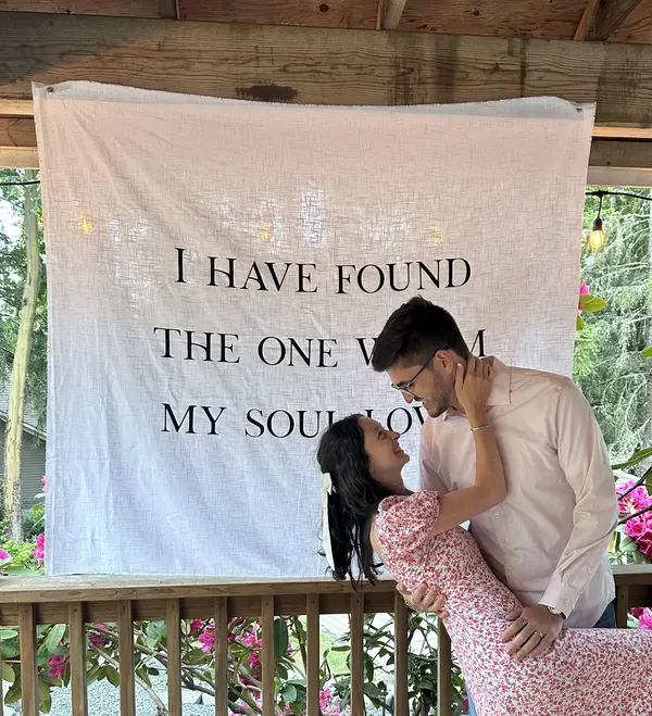 Cassie created a beautiful fabric sign that I was honored to have hanging during my Engagement Party! We got so many wonderful photos in front of it and I hope to use it again for my wedding!