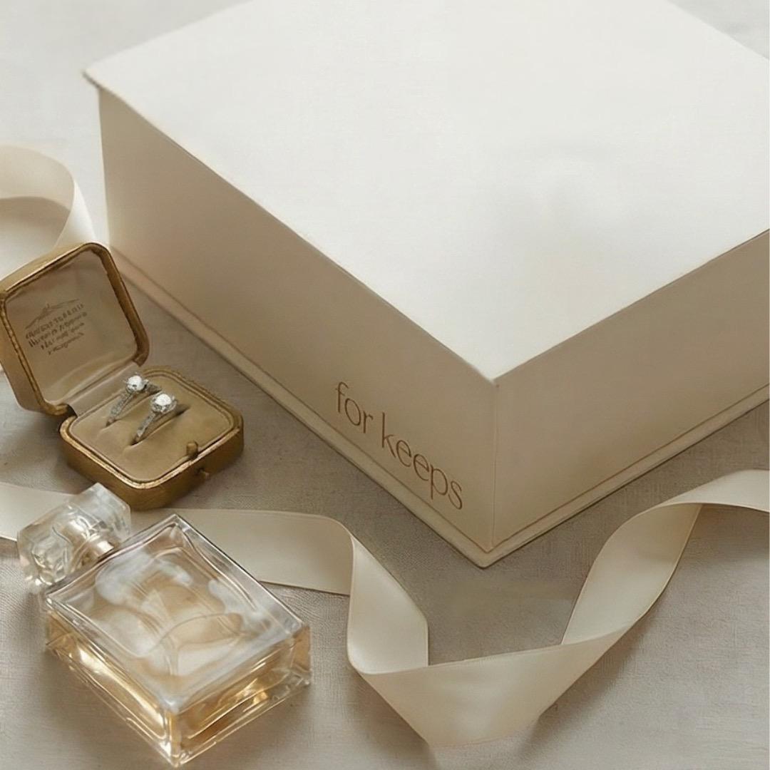 For Keeps was founded by wedding venue owners Holly, Hillary, and Mallory, who recognized that the engagement season's quiet joy was getting lost amid planning stress. After witnessing a decade of weddings, they saw couples losing the magic-in-the-air chapter before the "I do." They created for keeps™ to make engagement intentional, elevated, and unforgettable. The boxes contain heirloom-quality pieces and modern favorites, forming a full Heirloom Collection stored in a signature keepsake box.