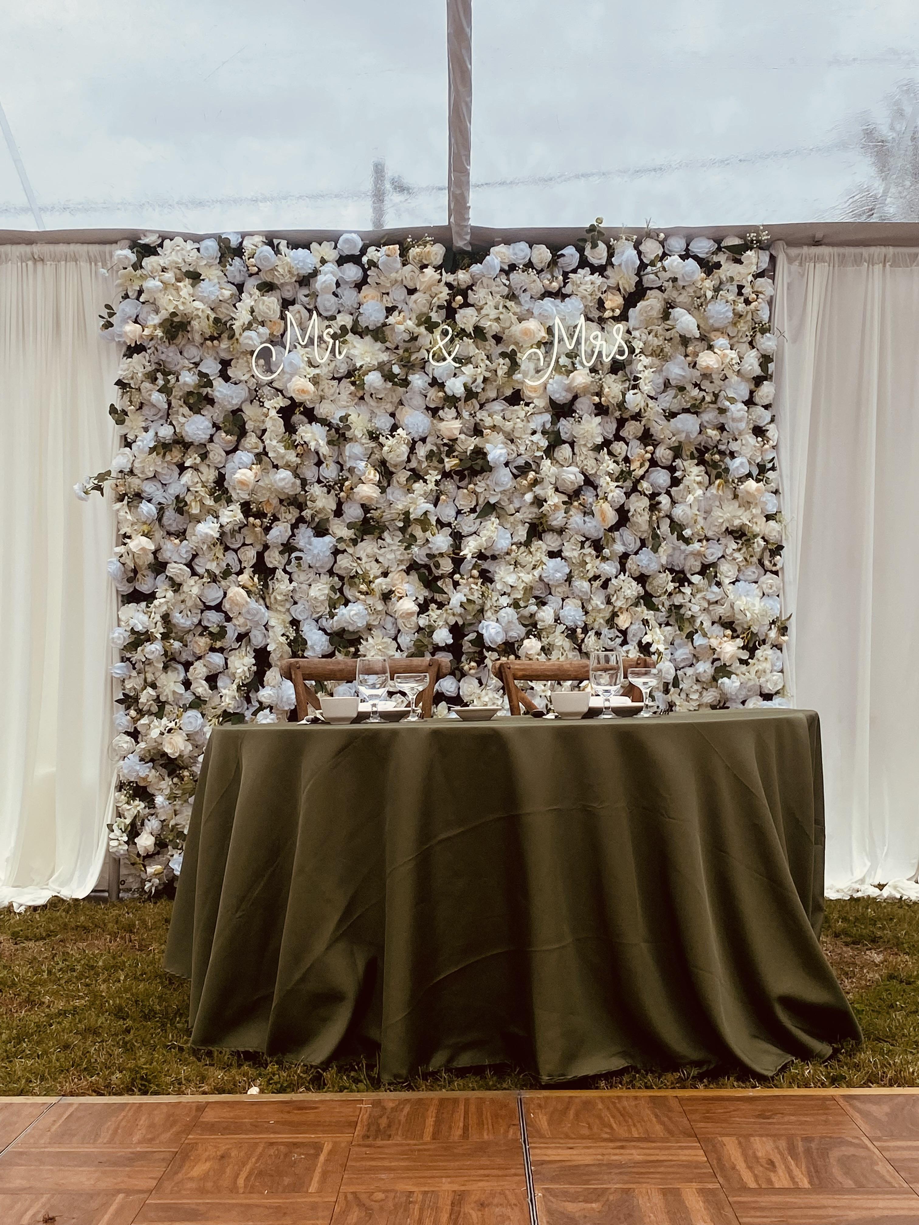 - A silk 8'x8' flower wall for the sweet heart table
