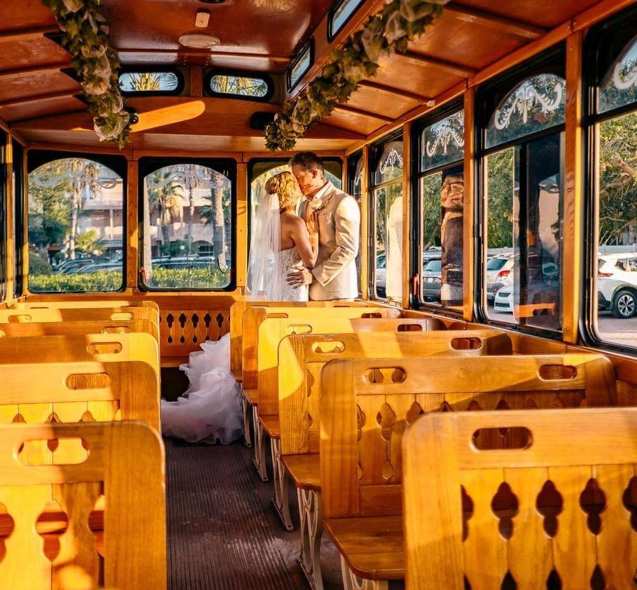Siesta Trolley, specializes in providing elegant, reliable transportation to make your wedding day truly unforgettable. For the ceremony, reception, rehearsal dinner, or guest shuttle service, our vintage-style Trolleys add a timeless touch of charm and sophistication to your celebration. Rely on our dedicated team’s professional experience to ensure every detail goes smoothly so you can focus on saying “I do.” Our courteous, dependable chauffeurs are committed to getting you and your guests to and from your venues safely and on time. With Siesta Trolley, your wedding day isn’t just a destination—it’s part of the journey. Enjoy The Ride!
