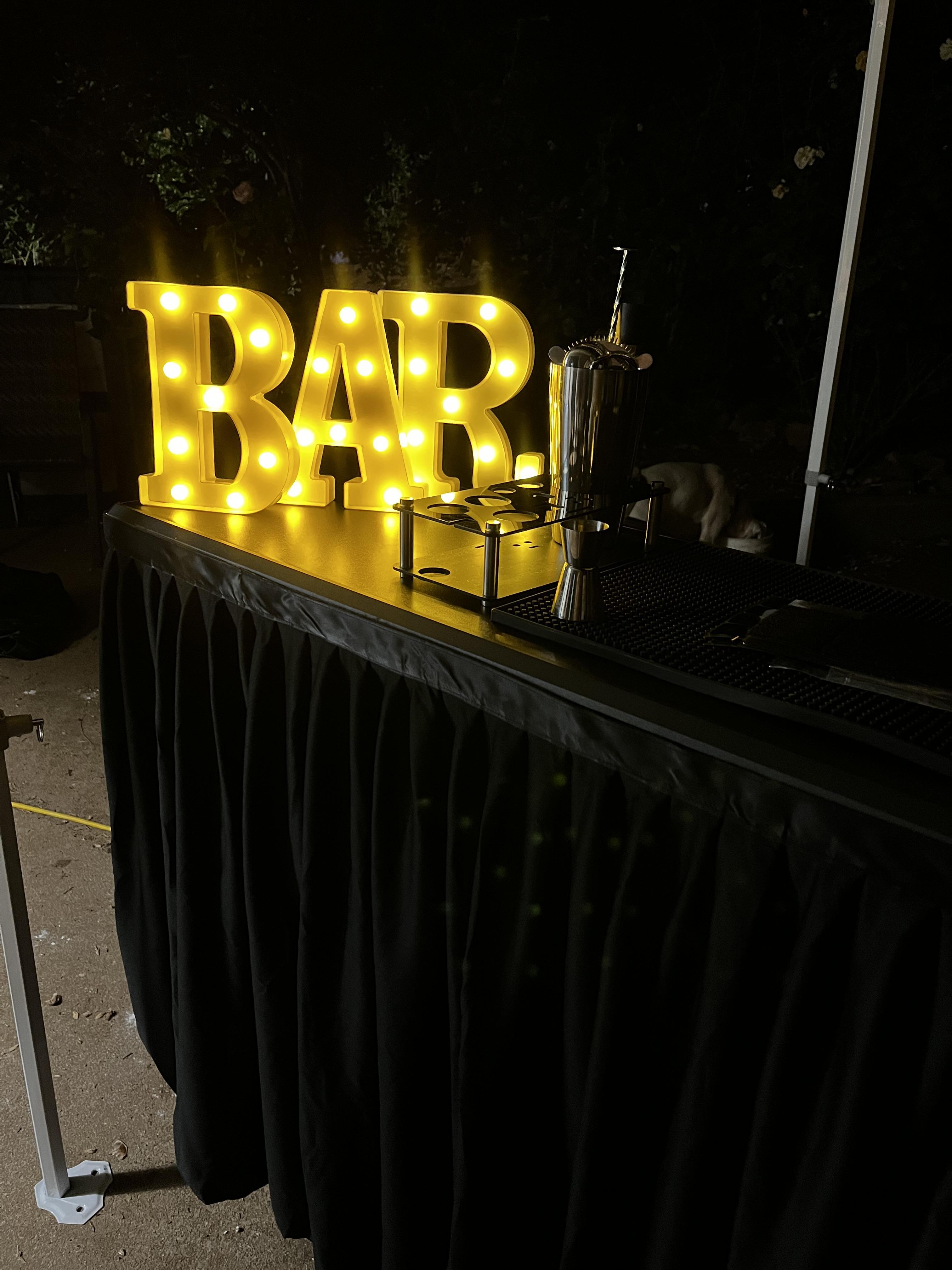 - Bartending services, dry bar rental, bar supplies
