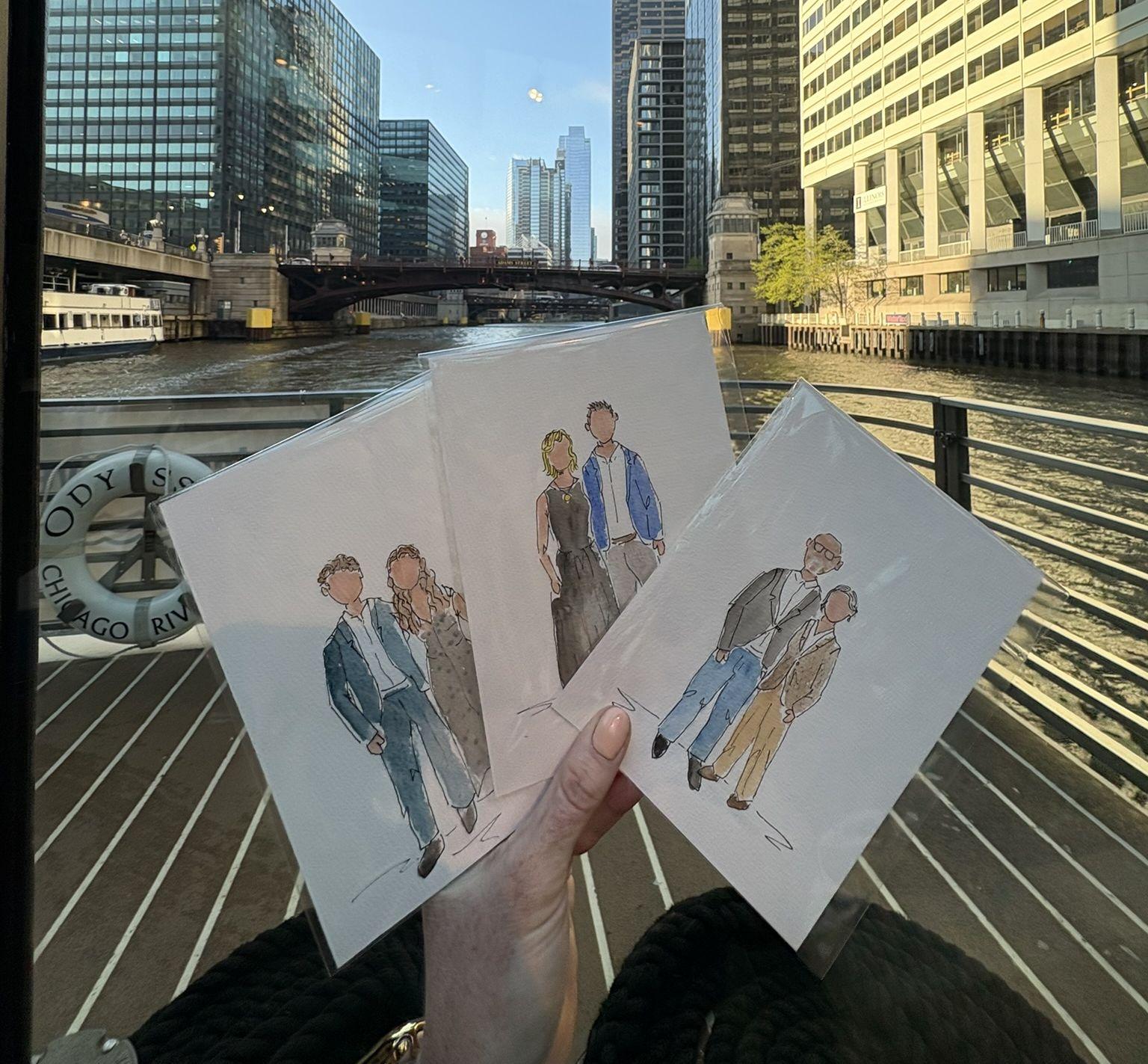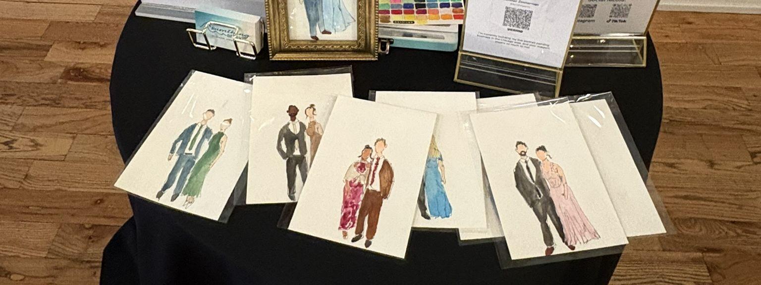 Hi, I’m Summer — a Chicago-based artist specializing in live watercolor guest portraits for weddings and special events. Live guest portraits bring a fun, interactive and personal element to your celebration, and I want to be a part of that! How it Works: Guests are briefly photographed by me or my assistant and then may return to the celebration while I work on their portrait. Guest can check back with me later in the reception and take home their hand-painted keepsake at the end of the night! I’m currently booking Chicagoland weddings and events.