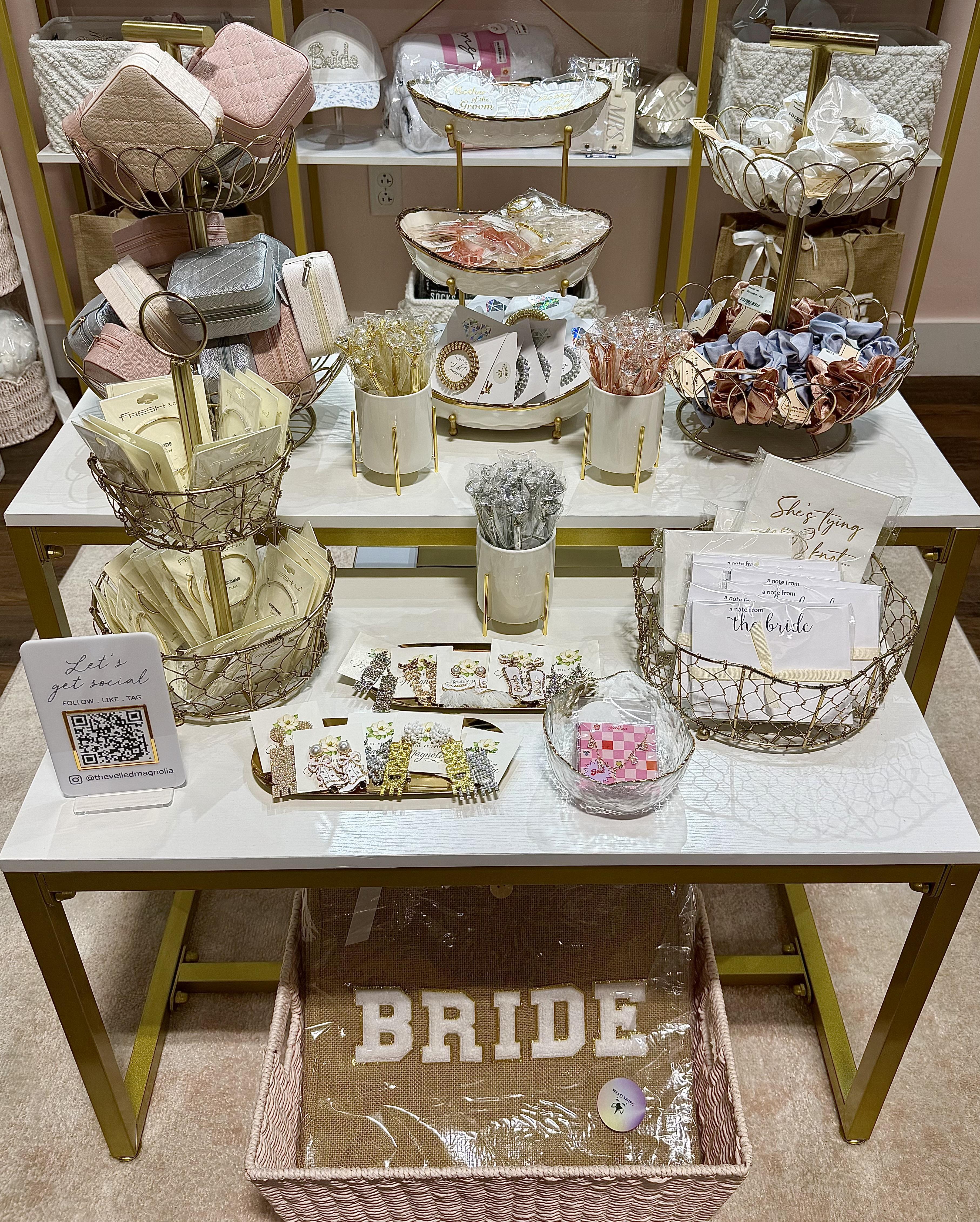 The Veiled Magnolia is a bridal accessory and gift boutique specializing in thoughtful details for brides and their bridal parties. Our curated collection includes bridesmaid proposal gifts, bridal shower accessories, honeymoon essentials, bridal party gifts, and meaningful day-of items. Designed with modern brides in mind, we help make every moment leading up to “I do” feel even more special. You can shop us in person at Booth G15 inside The Painted Tree Boutiques in Franklin, TN, where brides love finding everything in one place.