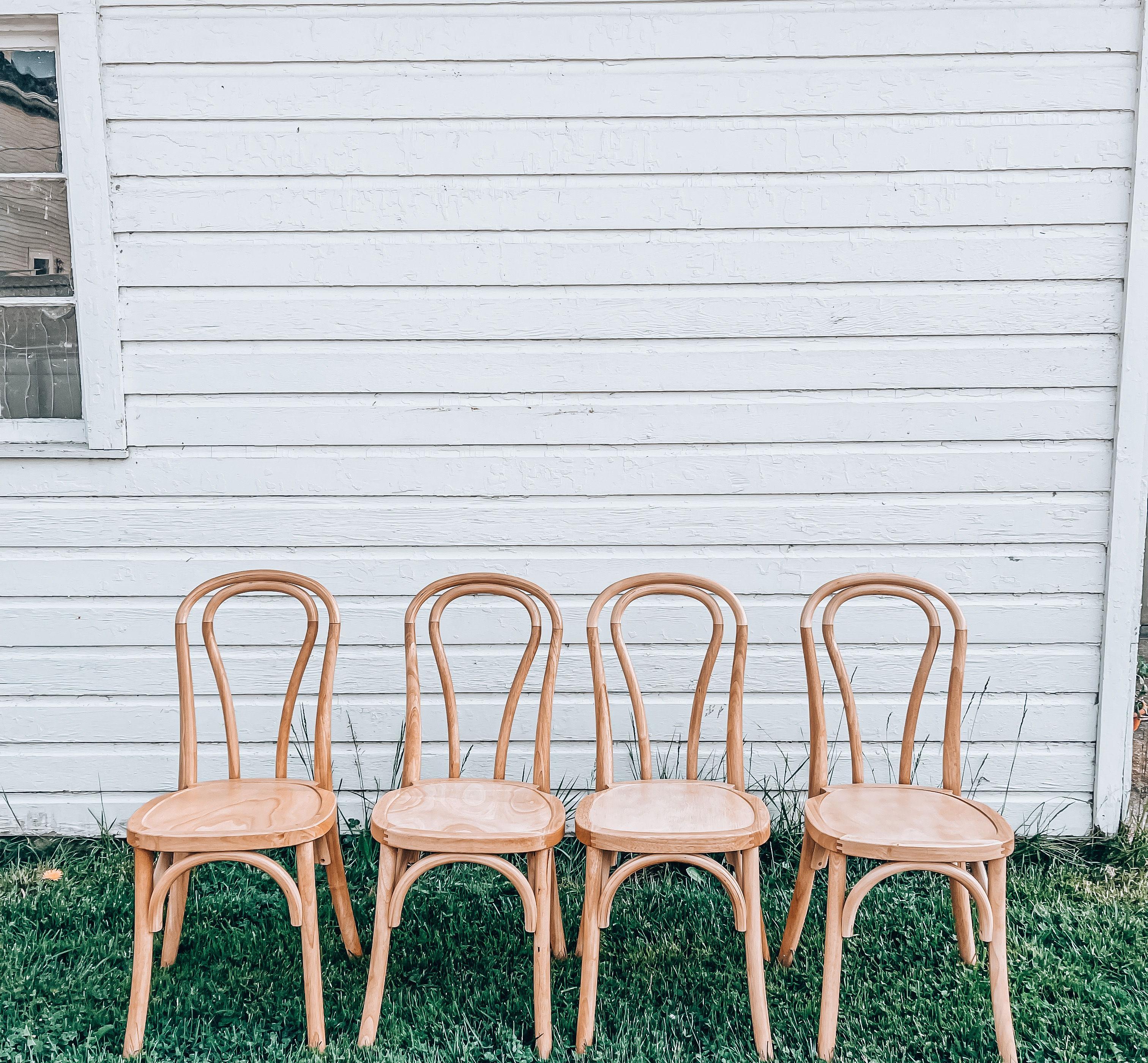 Our rental fleet features both vintage and modern pieces, to bring your own style to life for your nuptials. Enjoy premium, natural Bentwood Chairs for your guests. Suitable for both indoor and outdoor ceremonies and receptions. As well as tables, table linens, table decor, statement chairs and backdrops to complete your aesthetic.