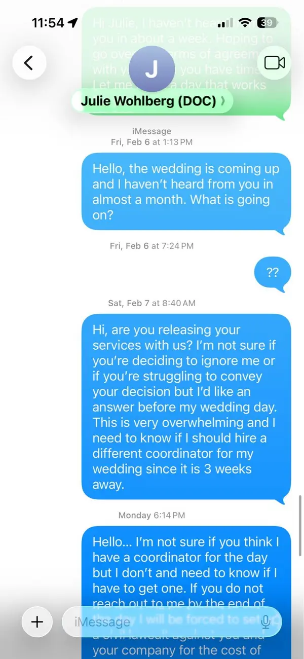 The owner, Julie Wholberg, is a scammer who ghosted me a month before my wedding. She took 3700 worth of my deposit and is now opening a new company under “The Event collective” not to be confused by the glorious Ashley Brown from the true company, The Event Collective. She became non-existent, as she failed to provide any services at all. Do not hire this vendor, as she will ruin your special day.