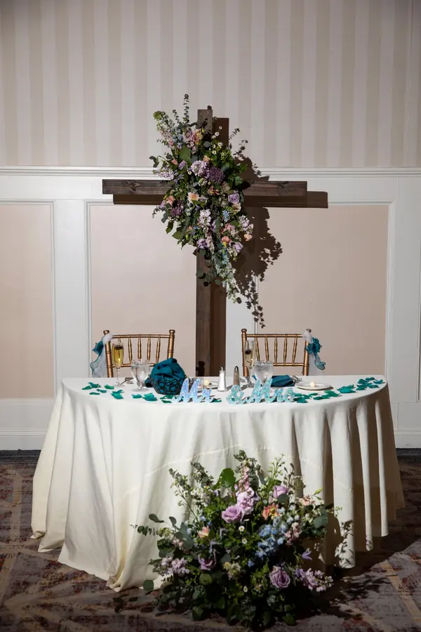 We had a wonderful experience with Fiddlestix Florals, and I’m so grateful our venue, Hotel Gettysburg, recommended Tiara to us! From the start, she was incredibly easy to work with, responsive, accommodating, and very mindful of our budget (which we truly appreciated because weddings add up quickly!). One of the biggest things I loved was how easy she made everything. I shared our color scheme and the overall vibe I was going for, and she completely brought it to life. I trusted her vision, and she absolutely nailed it. The florals tied everything together beautifully and added the perfect elegant touch to our wedding. She also went above and beyond in so many ways. She handled the drop-off and pick-up of a large cross we rented through one of her partner vendors, and she delivered all of the bouquets directly to my bridal suite for me and my bridesmaids, which made the day so much smoother. I also really appreciated how she helped us maximize our budget. The ceremony florals were seamlessly repurposed for our sweetheart table at the reception, which was such a smart and beautiful way to get more use out of everything. And one of my favorite details she suggested was a flower wand for our 3-year-old flower girl instead of a bouquet or basket, which would have been harder for the little one to manage. It was such a thoughtful idea and ended up being absolutely perfect! Overall, the flowers complemented every part of our wedding and truly completed the look we were going for with the mothers’ corsages, the boutonnières for the men, and the bouquets. I highly recommend Fiddlestix Florals to any couple looking for stunning florals, thoughtful service, and a vendor who genuinely cares about your vision and your budget. (Photos by Megan Gingrich with MG Photography)
