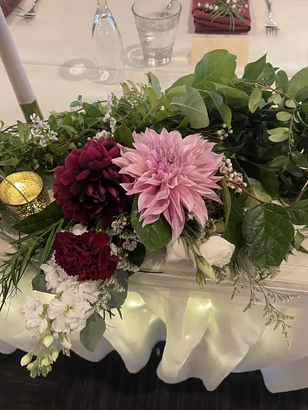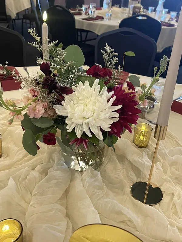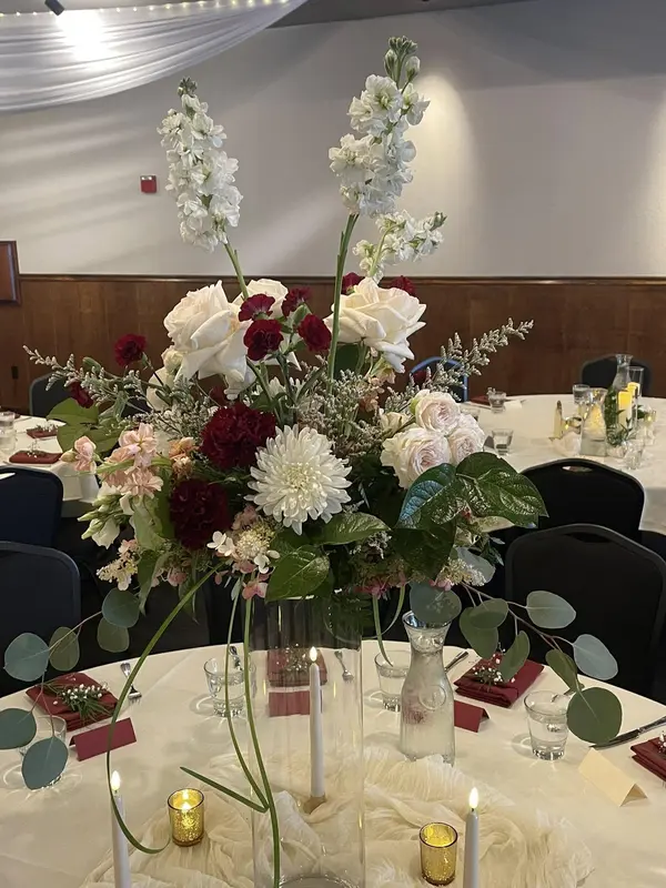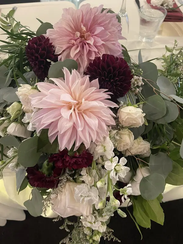 Gathered Garden Floral Design was an absolute pleasure to work with for our wedding. From the very first interaction, their communication was prompt, clear, and detailed, and they were always so kind. Their creativity and attention to detail were evident in the beautiful, original floral designs they created for my son's special day. The bride's parents grow Dahlias and they wanted them incorporated into the bouquets and centerpieces. Tracy did a beautiful job thinking outside the box and brought a unique and beautiful vision to life. They arrived early to set up and stayed late to ensure everything was perfect, going above and beyond to make our wedding day truly special.