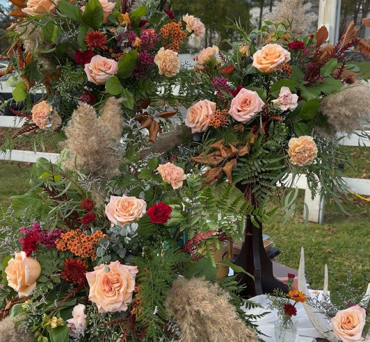 We treat every wedding like it’s our own. Our hands, hearts,creativity go into every bloom we place. We offer custom floral installations-such as hanging gardens, floral chandeliers, and immersive ceremony backdrops that turn ordinary spaces into breathtaking experiences. Every couple is unique. We listen to you vision, style, and color pallets to create bespoke floral designs that reflect you!