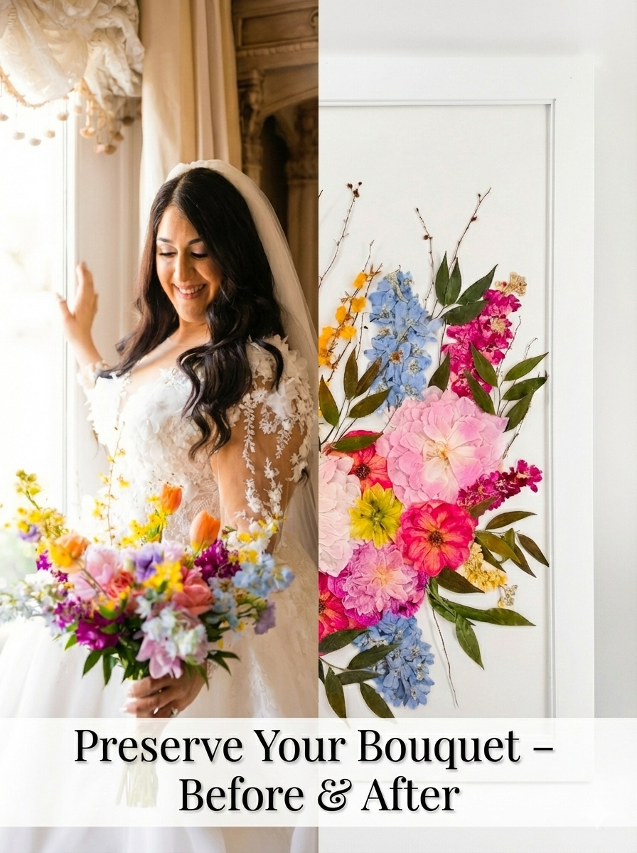 Preservebouquet is a boutique floral preservation studio specializing in custom wedding bouquet preservation. We help couples transform their fresh wedding flowers into lasting works of art—pressed floral frames, resin keepsakes, and other timeless heirlooms. With a deep love for flowers and storytelling, we bring passion and precision to preserving your bouquet after your wedding day. Each piece is crafted by hand, ensuring your memories are beautifully captured and cherished for years to come. Whether you're a bride looking to save your bouquet or a couple seeking a sentimental keepsake, we're here to turn your flowers into forever.