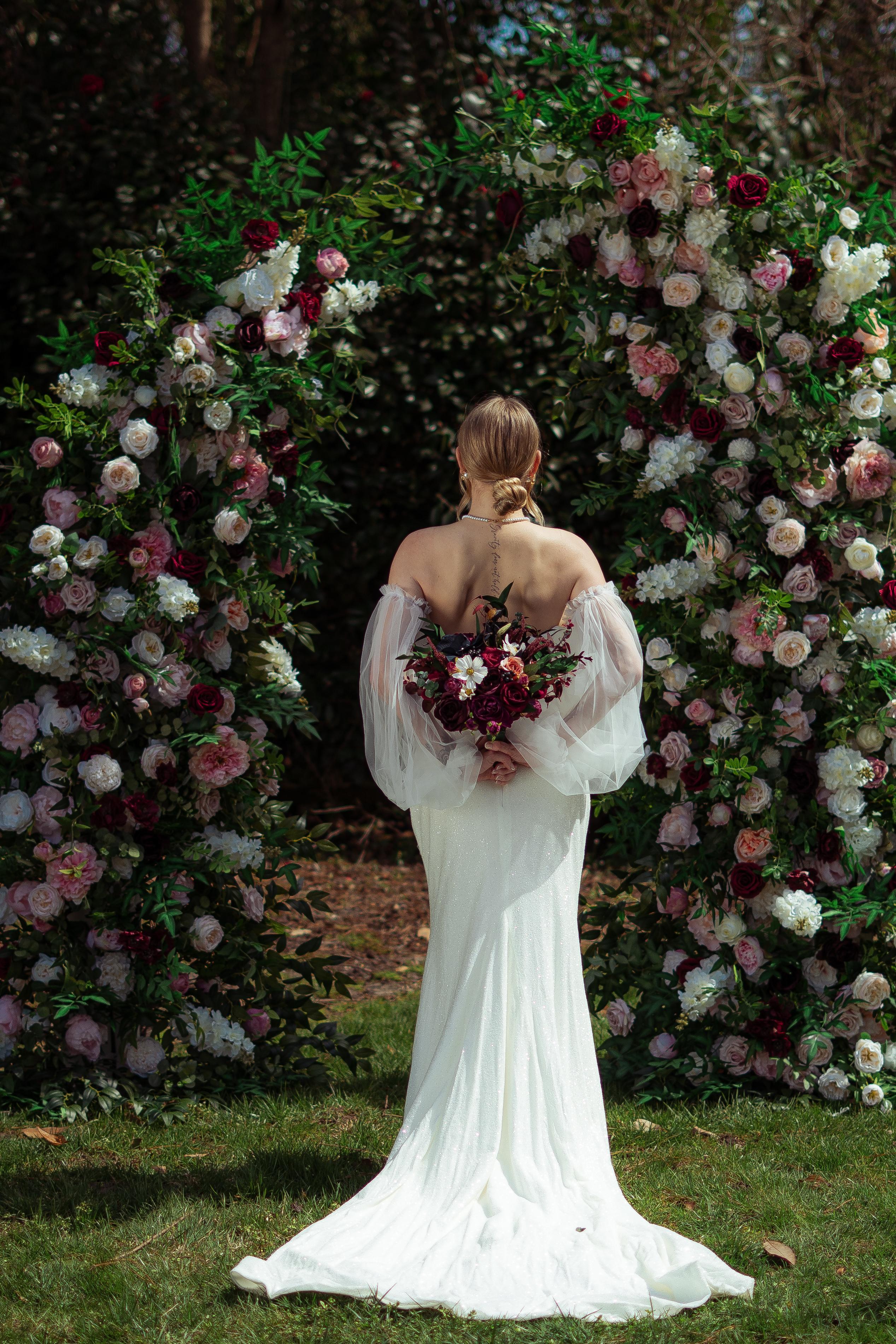 Our business offers luxury wedding arch rentals, as well as other floral decor. We also do offer items for purchase if you are looking to customise your own design, that is not offered by our company.