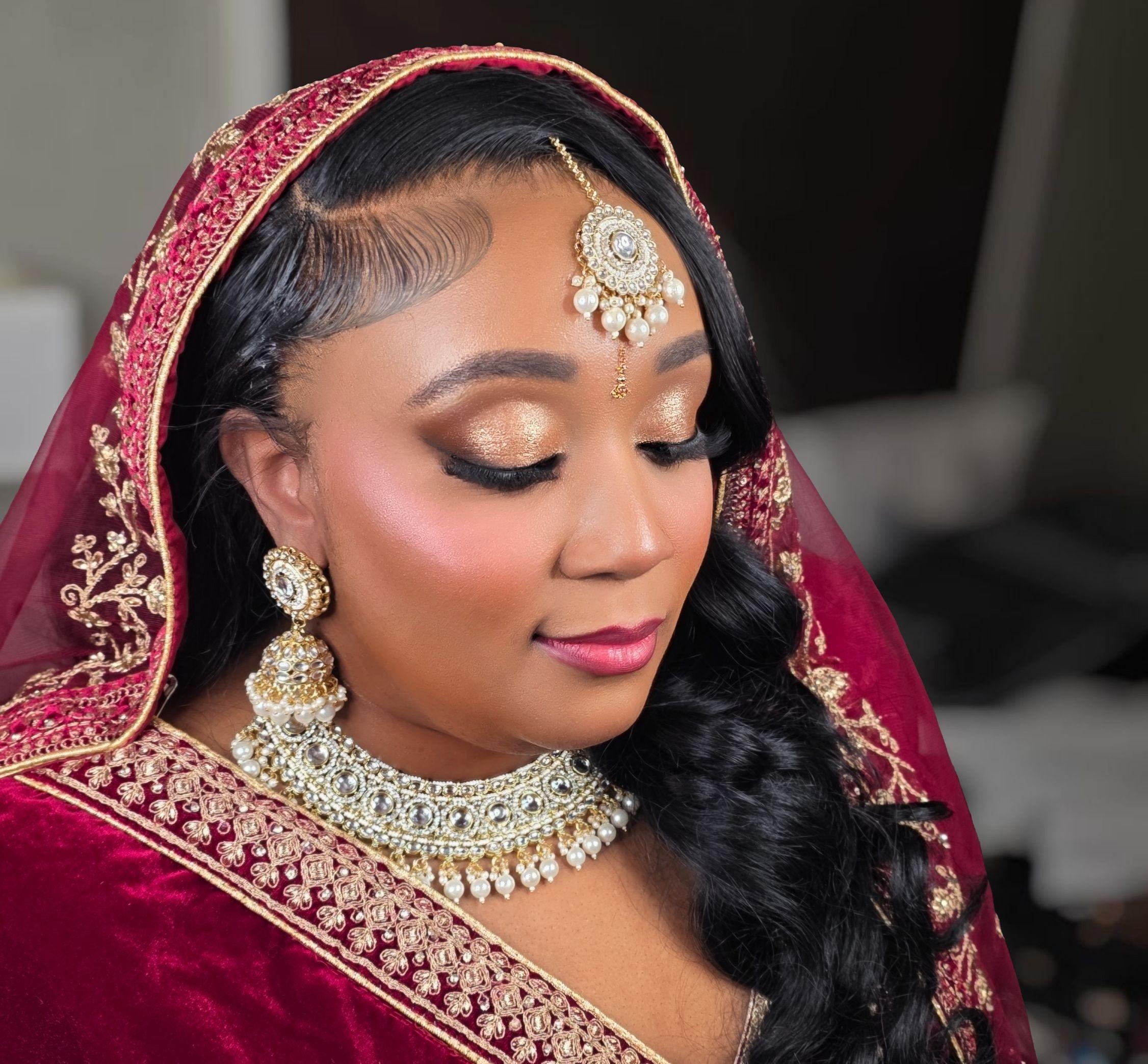I provide a personalized approach—looks are tailored to your features, comfort, and cultural style. As a certified artist with hygiene training and a team for full bridal support, I ensure a stress-free, elevated experience.