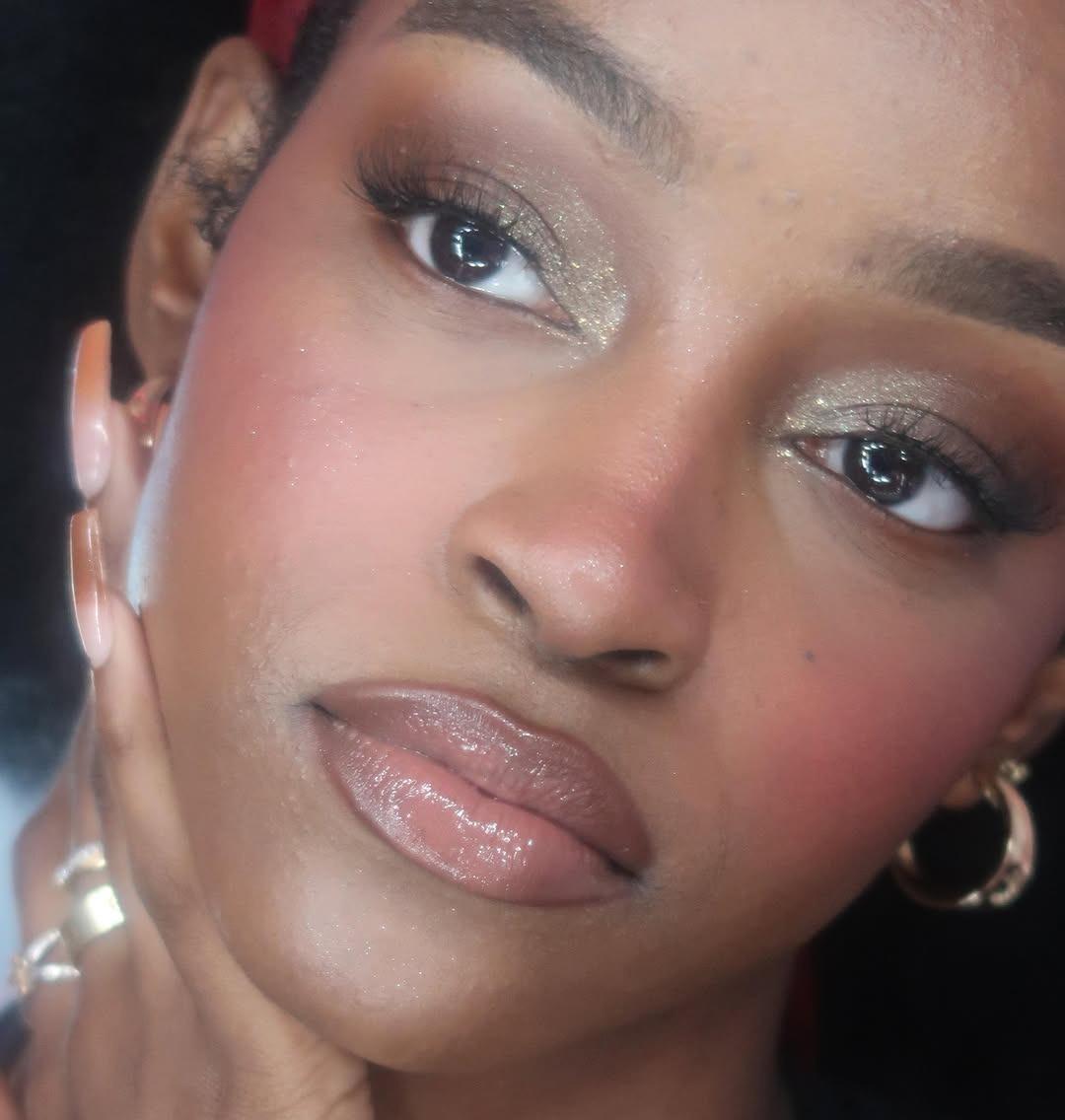 - Soft blush application