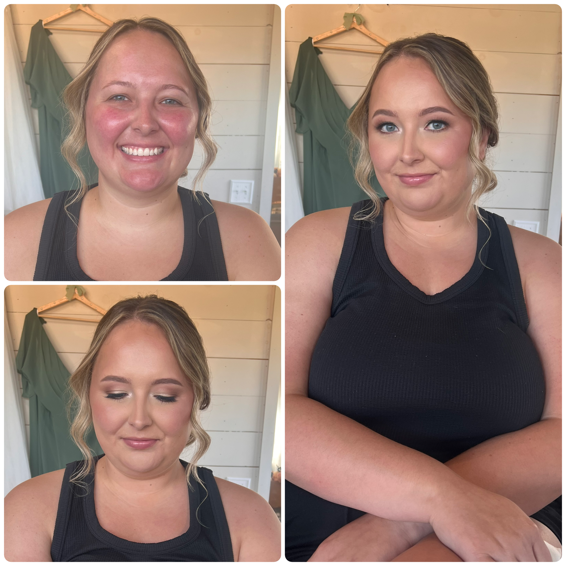 If you are considering booking Jeanette for makeup, DO NOT HESITATE, BOOK HER NOW. There are no words to describe how kind Jeanette is, and she was my hype woman from the first day I contacted her, making me feel so special every time we connected. She does more than just makeup... When I went to my makeup trial, my skin was in a rough state with pretty bad hormonal acne, and she talked to me about my skin care regimen and gave me some advice to try to improve my skin in the time between the trial and my wedding. I followed every single tip she gave me, and decided to completely overhaul my products and try her recommendations. After about 2 months with Jeanette's recommended regimen, my skin cleared up and I was feeling so incredibly confident without makeup - something I have never been able to say before. The day of my wedding I had no acne, even a lot of my scarring was gone, and it helped boost my confidence so much. The makeup: I don't wear makeup often, so when I came to the trial I had some pictures that I thought looked nice, but Jeanette helped to talk through the details to get to the bottom of what I liked about each photo and get to know what type of look I was going for. She checked in with me multiple times throughout to ask how things were looking or if I wanted any changes. When she did my eyeshadow she started light and more natural and then slowly built it up, asking me at each step to verify if I wanted more or if we were at the right amount. I wanted to do airbrush but had never done it before, so she explained it to me, let me feel it on my hand first, and told me all the differences of airbrush vs traditional foundation. After the trial I was stunned by how beautiful I could be!!!! The night of the trial, I texted Jeanette because my chin area was getting flakey and the makeup was separating, and asked her what we could do to ensure it had staying power on wedding day. She was so nice and adjusted her recommendations for skin care, and also assured me that we would adjust products on the day of knowing that occurred after the trial. The day of the wedding Jeanette was once again, my biggest hype woman and I felt so special to be in her chair. She talked to me more about skincare and applied moisturizer tailored to how my skin had changed and how it was acting that day. I felt absolutely gorgeous and my guests were complimenting my makeup all day. We took photos outside and the weather was extremely humid and I was DRIPPING SWEAT (not exaggerating) and I was absolutely shocked to see that my makeup held up throughout! I got to the reception and my friends said they would've never known I had just been sweating for an hour! I danced for HOURS, again, sweating ALL night, and my makeup actually still looked good at the end of the night, and I didn't bother taking it off. I was shocked to find that the next morning there was no transfer of makeup onto my pure white pillow!!! So an added bonus, I had a full face of makeup that still looked great for breakfast the next morning! Finally, Jeanette even checked in with me the day after the wedding, which was unexpected but so sweet!!! Summary: Jeanette will be my go to/recommended makeup artist for life! (Pictures are before and after from makeup trial)