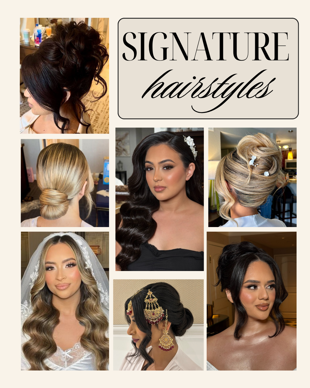 I specialize in timeless looks including; the hollywood/glam wave, polished romantic updos, soft half-up styles, as well as, the effortless/lived-in styles. While bringing your hair vision to life, I strive to cater your glam experience to your needs; whether that's bringing a calm presence, hyping you up, or space for quiet moments, I'm here for you!