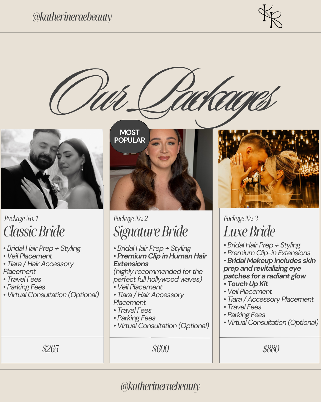 Katherine Rae Beauty provided amazing communication throughout the entire wedding planning process. They always answered any questions I had and reassured me, which helped ease my mind. Katherine and Ammo are truly amazing at what they do - I couldn't have asked for anyone better to help me look and feel beautiful on my special day. Having my hair and makeup done by them that morning was such a lovely, relaxing experience, and they made me feel so confident and special. I am so grateful for their talent and professionalism, and I highly recommend Katherine Rae Beauty to any couple planning their wedding.