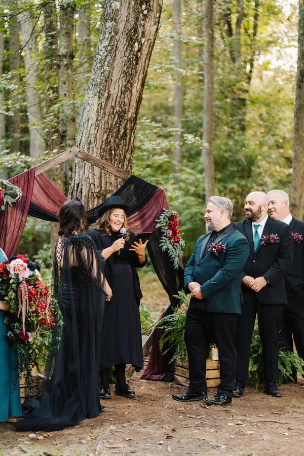 Picture it, Clayton NJ, 2025. You’re about to have the spooky wedding of your dreams in the middle of the woods, but you’re not quite sure how to start or even close out your ceremony. Kait was there the entire way. Perfectly curating the ceremony to our style. We laughed, we cried, and I didn’t poop my pants from anxiety because I knew she had us taken care of . We are not religious, but wanted to do some sort of ritual that captures us as a couple. No hand fasting, no sand, no unity candles. None of them seem quite right and then bam, Kait comes in with an idea not only have I never seen before, but it’s so perfectly us as a couple it brought tears to my eyes. She knew we were both artists and had us create a picture together. The first piece of art we created as one unit. Our hands were shaky so it’s wonky, but it’s my favorite thing ever. I’m still not sure why you’re reading this and haven’t hired her already.