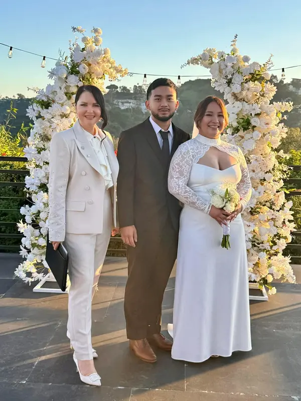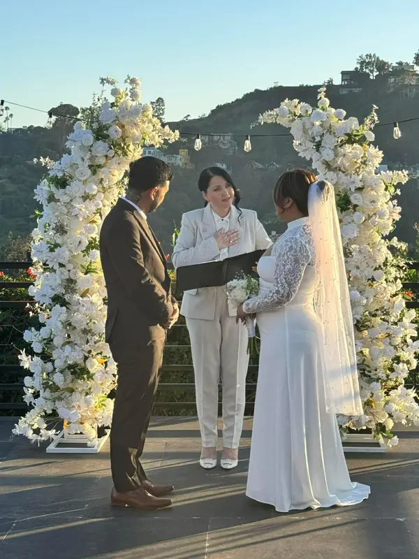 Wedding Officiant Julia Garcia was an absolute pleasure to work with on our special day. From our very first conversation, her communication style was clear, thoughtful, and engaging, putting us at ease throughout the entire process. On the day of our wedding, Julia's organizational skills, promptness, and mindful presence truly shone through. She helped bring a sense of elegance and ease to our garden ceremony, coordinating her outfit seamlessly with our wedding colors. Julia's warm and professional demeanor made our wedding party feel completely at ease as she guided us through our vows. We are so grateful to have had Julia as the officiant for our wedding and would highly recommend her services to any couple looking for a truly special and memorable ceremony.