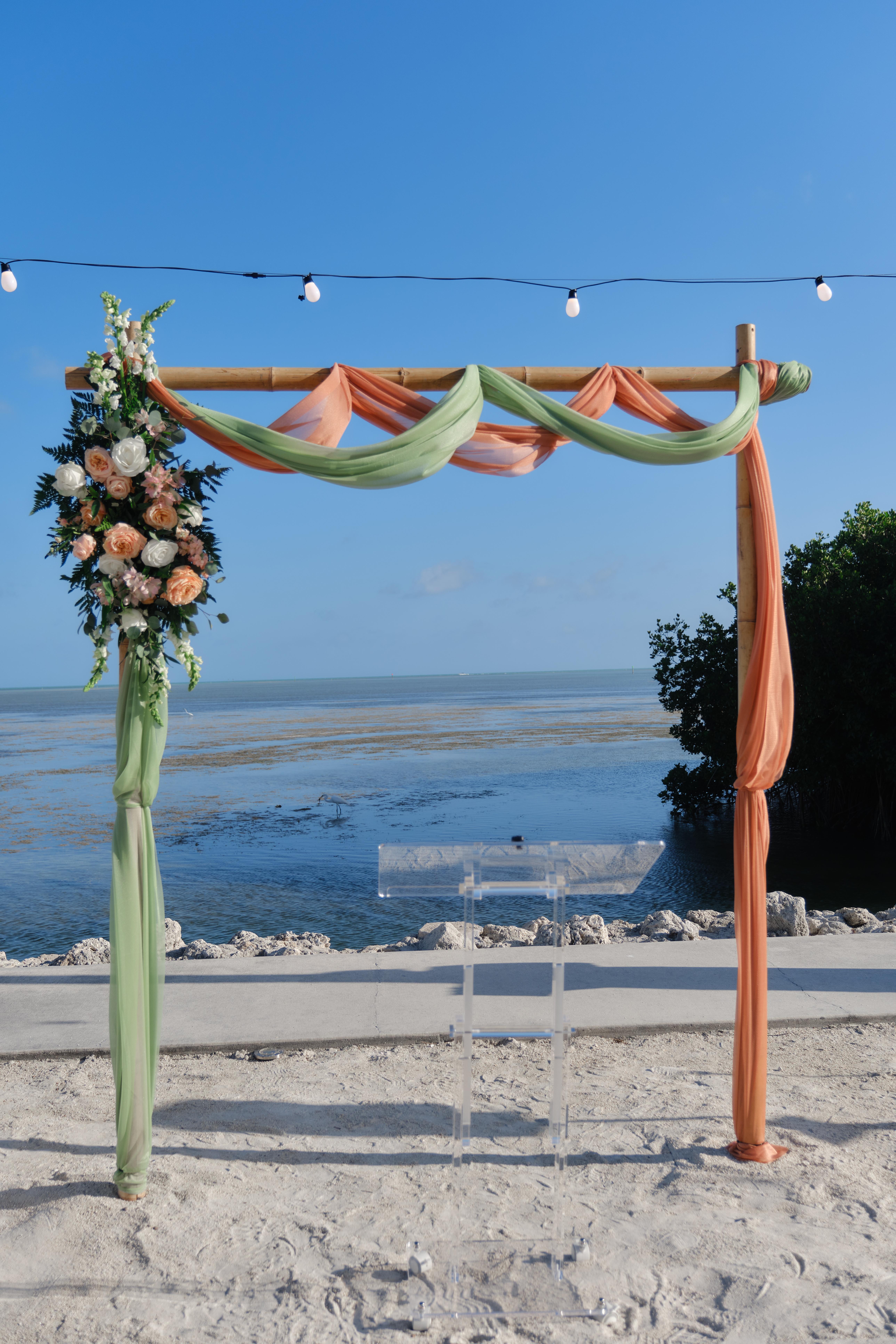 All-inclusive Key Largo or Islamorada weddings including ceremony & reception venue, officiant, décor, catering, cake, flowers, arch, DJ, & photographer—everything you need for a seamless celebration.