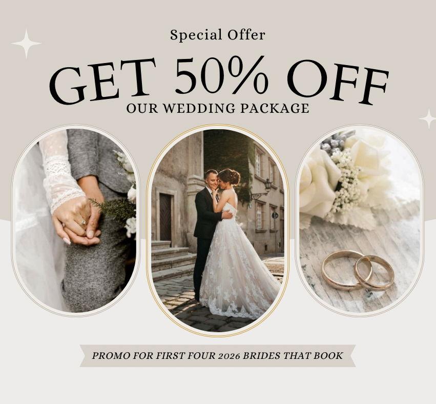 50% the first 4 2026 weddings that book with us!