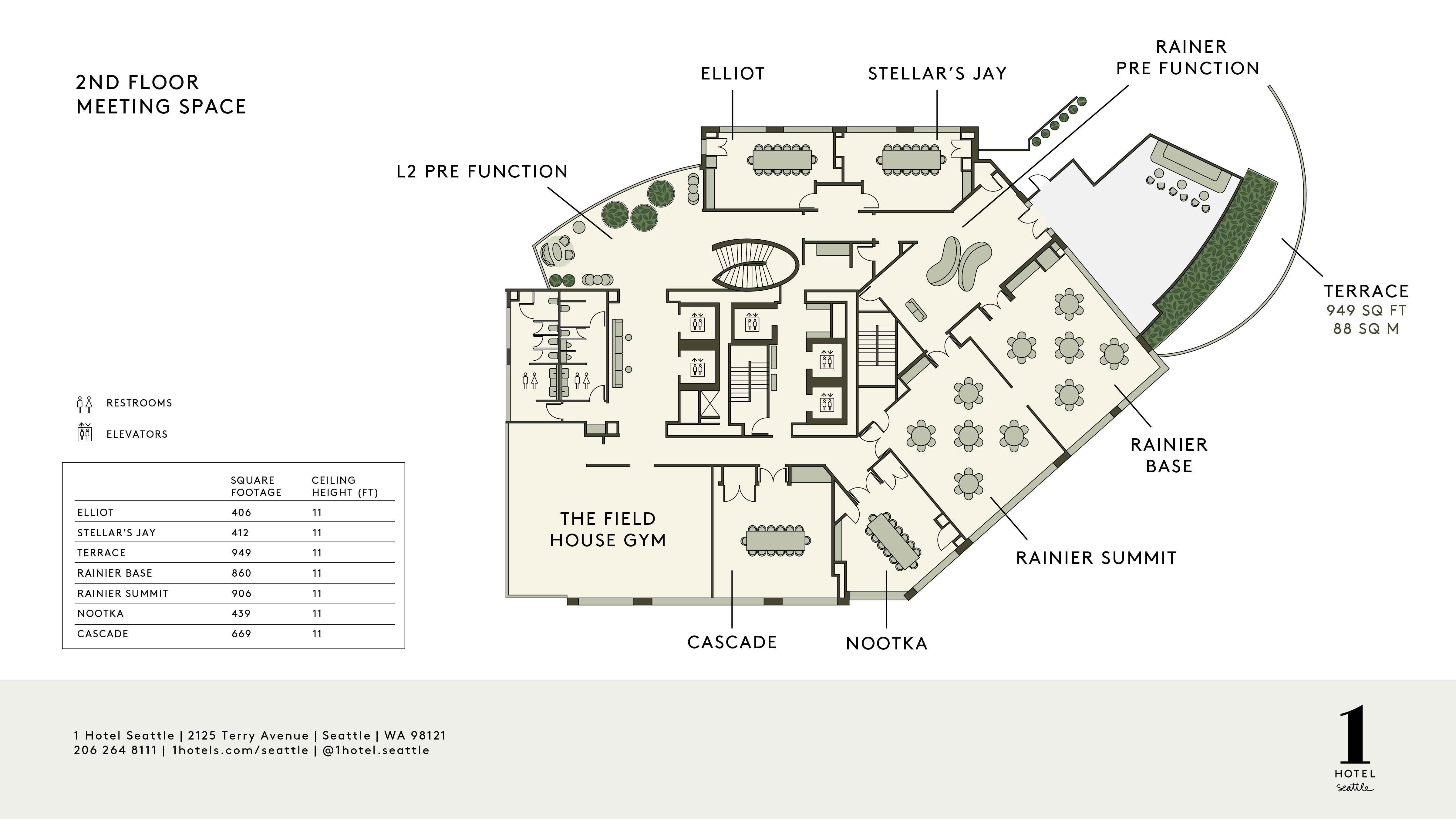 Elevate your meetings at Rainier Summit, a space designed to inspire with abundant natural light. Equipped with cutting-edge technology and adaptable configurations, it's ideal for workshops, seminars, and intimate conferences. The harmonious integration of natural elements creates an environment conducive to creativity and collaboration.