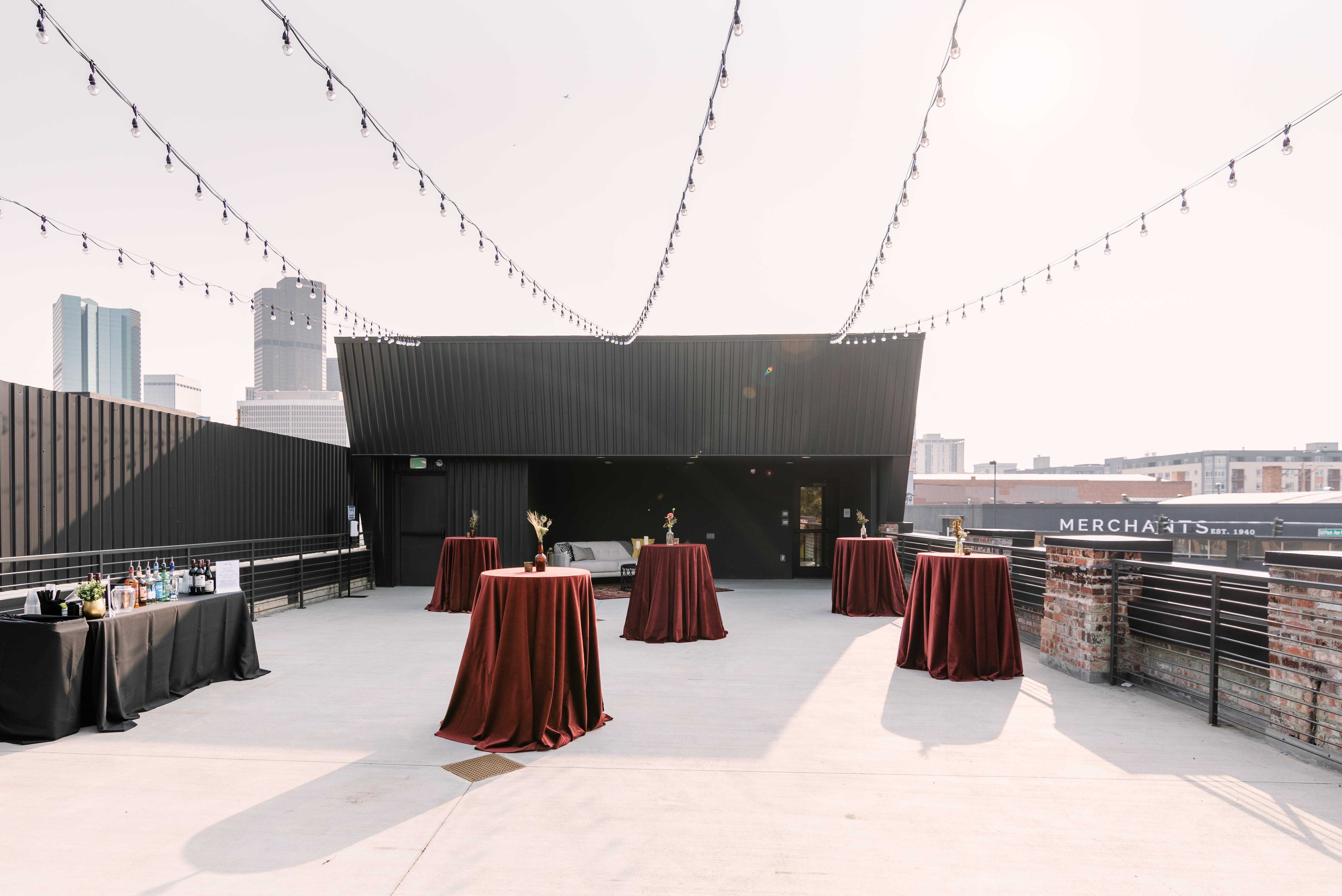 Enjoy urban skyline views and incredible Colorado weather on our Rooftop, which can accommodate up to 200 guests for a ceremony or 175 for a cocktail reception. The Rooftop can be rented for a standalone event or as the perfect pre or post-party extension of your main event. Discounted rate applied when adding this space to the Main Hall rental.
