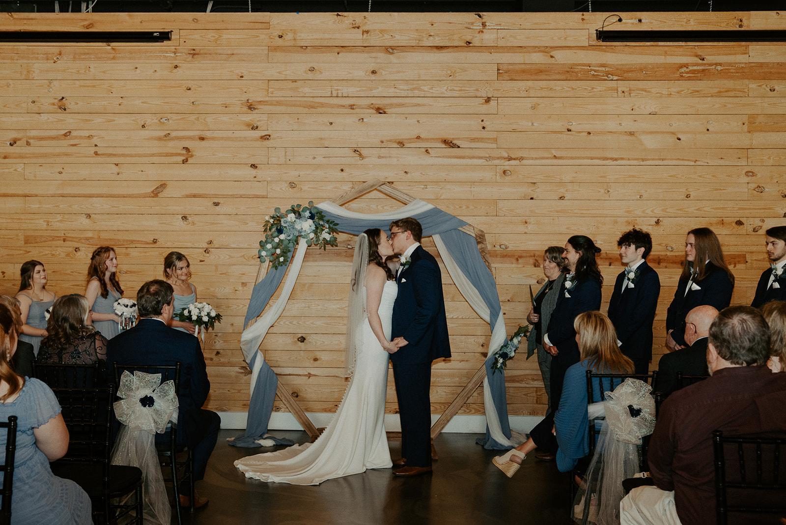 Our Event Hall is the perfect canvas for your customized ceremony. This stylish space has full audio-visual capabilities, private restrooms, and a separate entrance that allows a grand reveal of your cocktail and reception areas. The oak-wood focal wall allows for your ceremony backdrop to be uniquely yours and our dimmable farmhouse chandeliers set the mood that is most appropriate for your celebration.