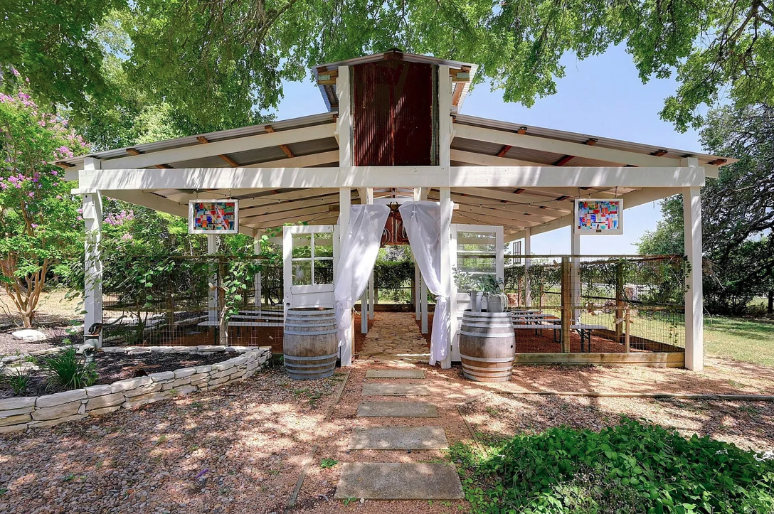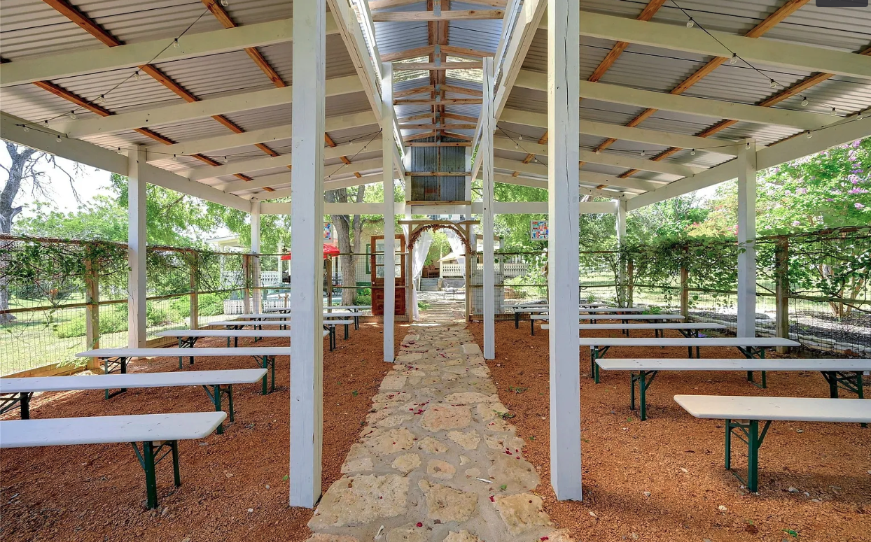This open-air chapel is located on the grounds of a historic home that was once part of a 2000 acre ranch in the heart of Texas.