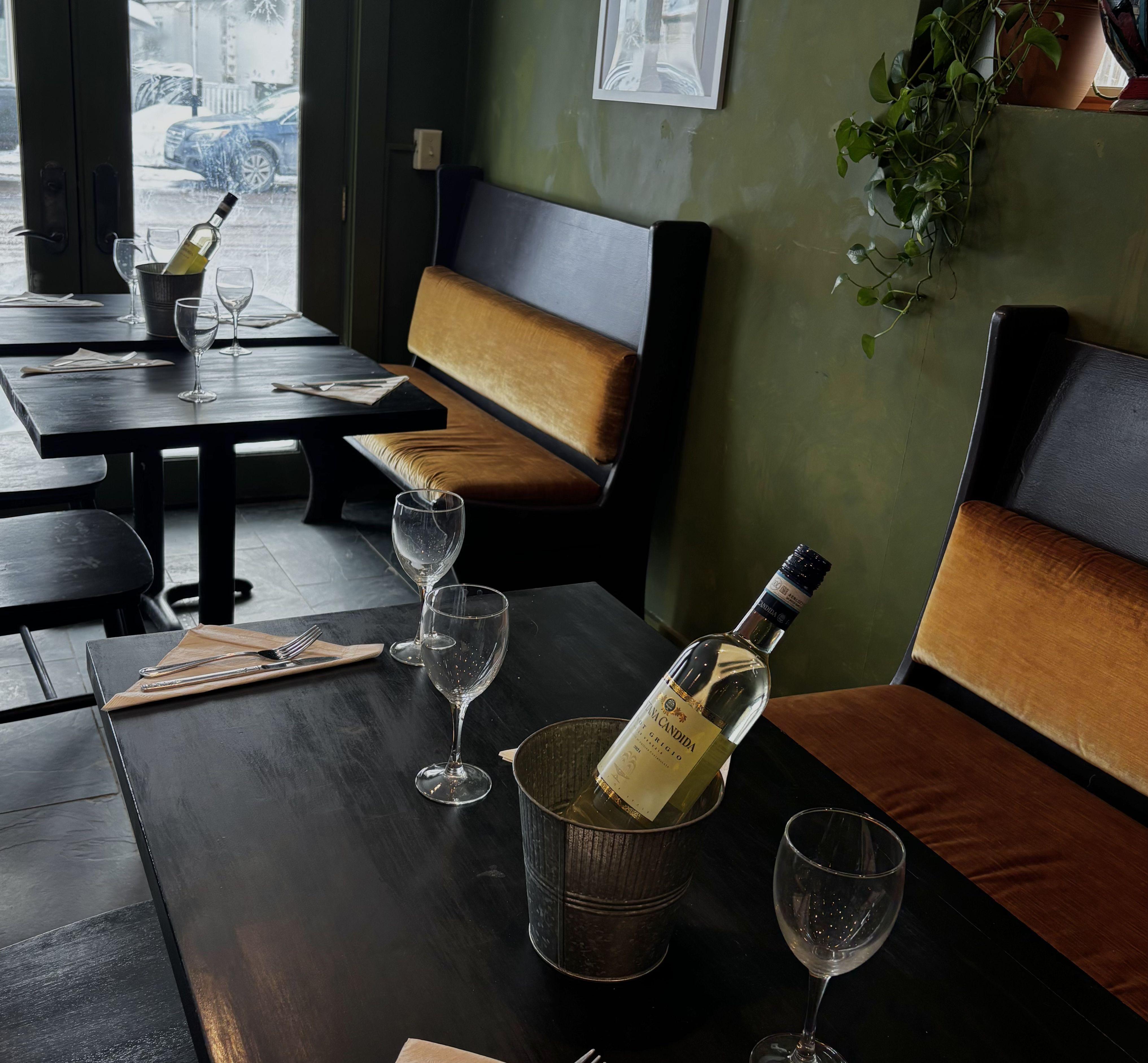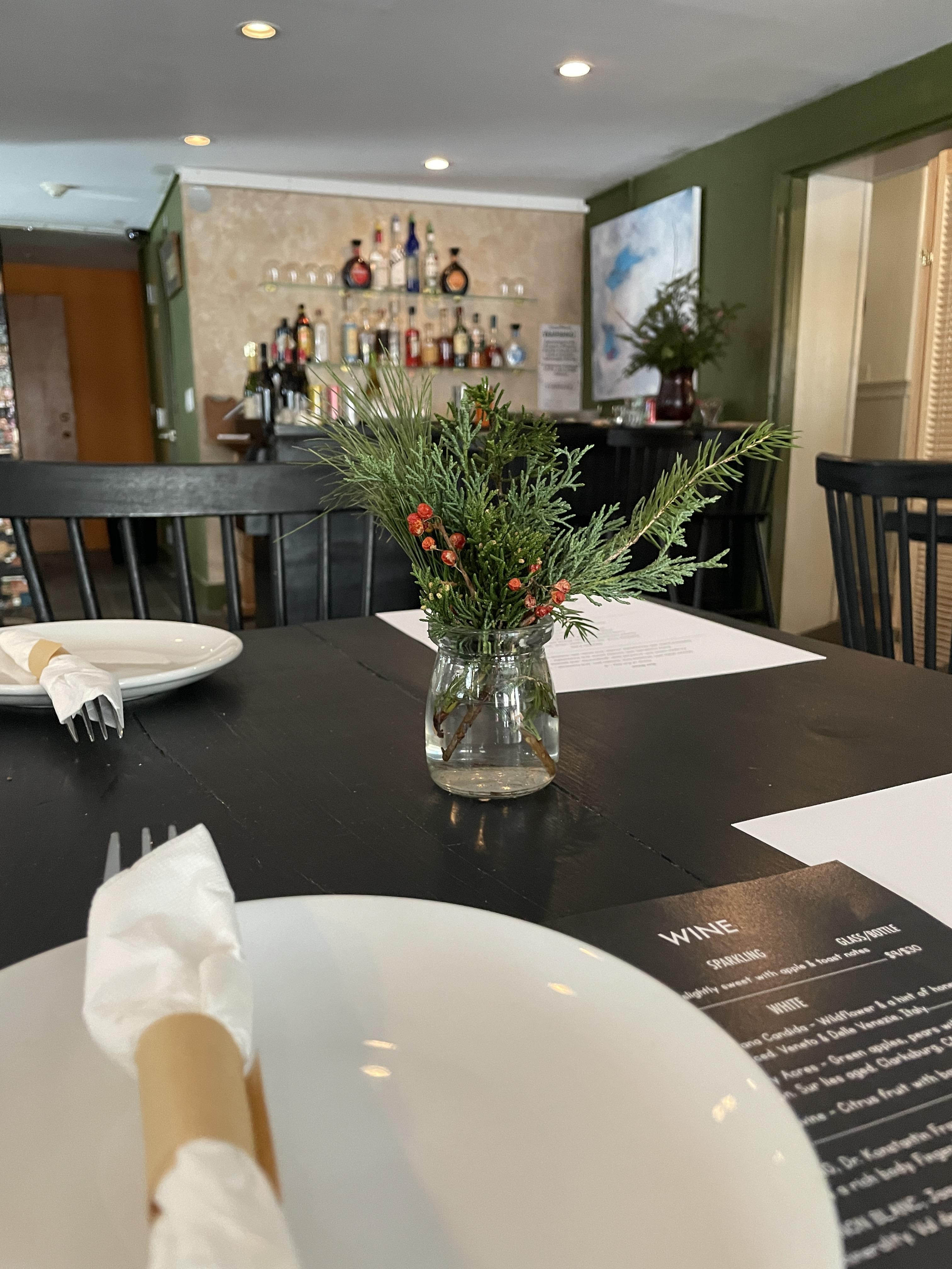 We are a small intimate restaurant, our main room is styled with understated elegance. This space is perfect for micro weddings and can comfortably seat 40 people. Our Cafe rooms bright and cheerful, our zinc counter is the perfect spot for a buffet meal. Let our formally trained culinary staff feed you and your guests, farm to table meals customized just for you!