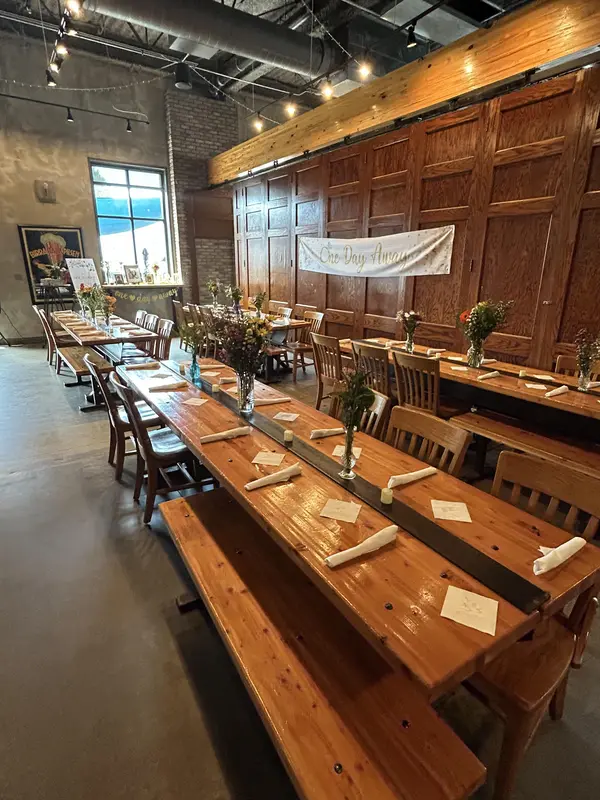 We offer a spacious and open floor plan with a stunning bar including 24 tap beers, family style seating, a private stage both indoors and on our outdoor patio. Our modern industrial design makes it ideal for elegant weddings with minimal decorating needed. We customize the dinner to your desires, all while making your big day affordable, simple, and beautiful.