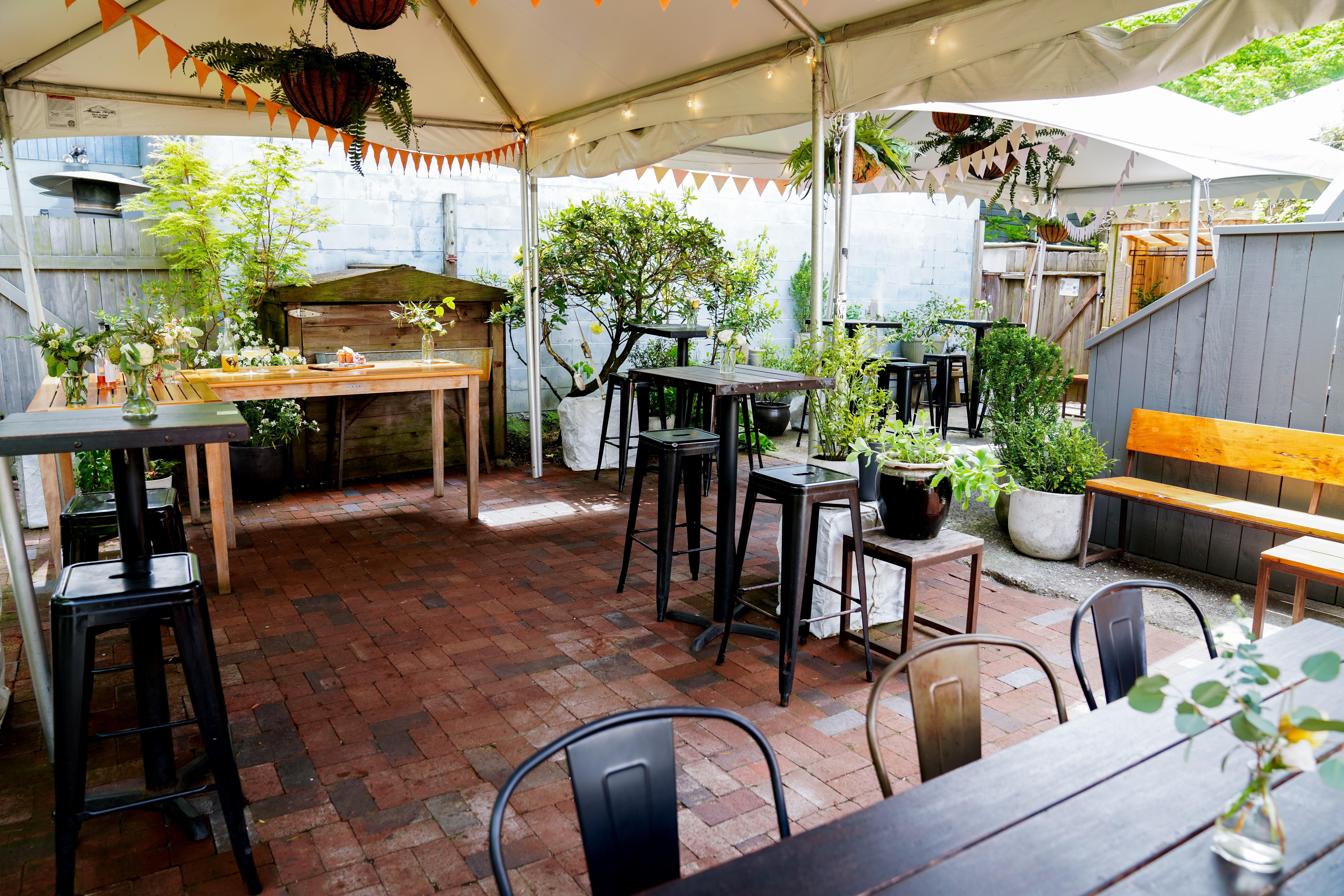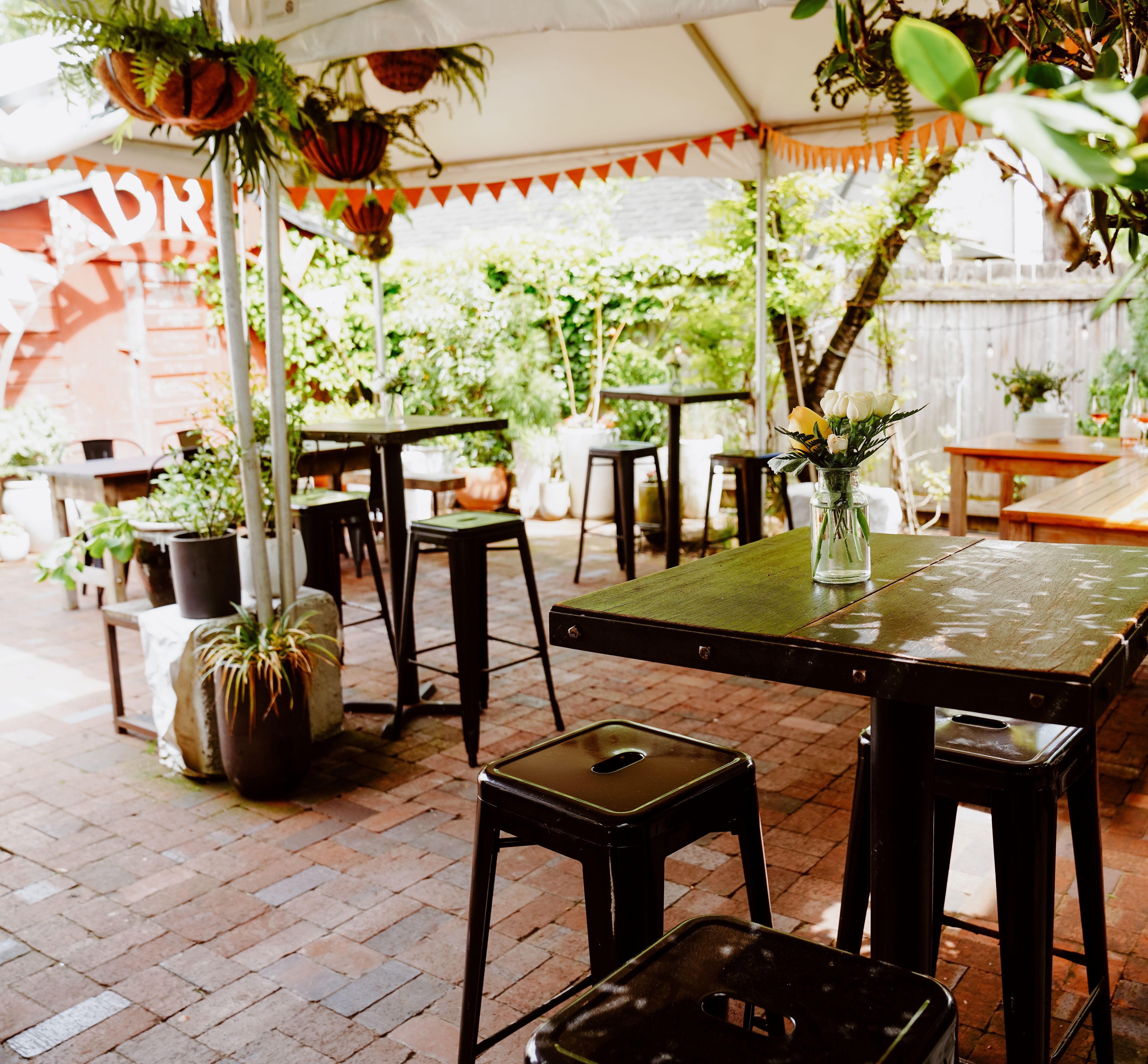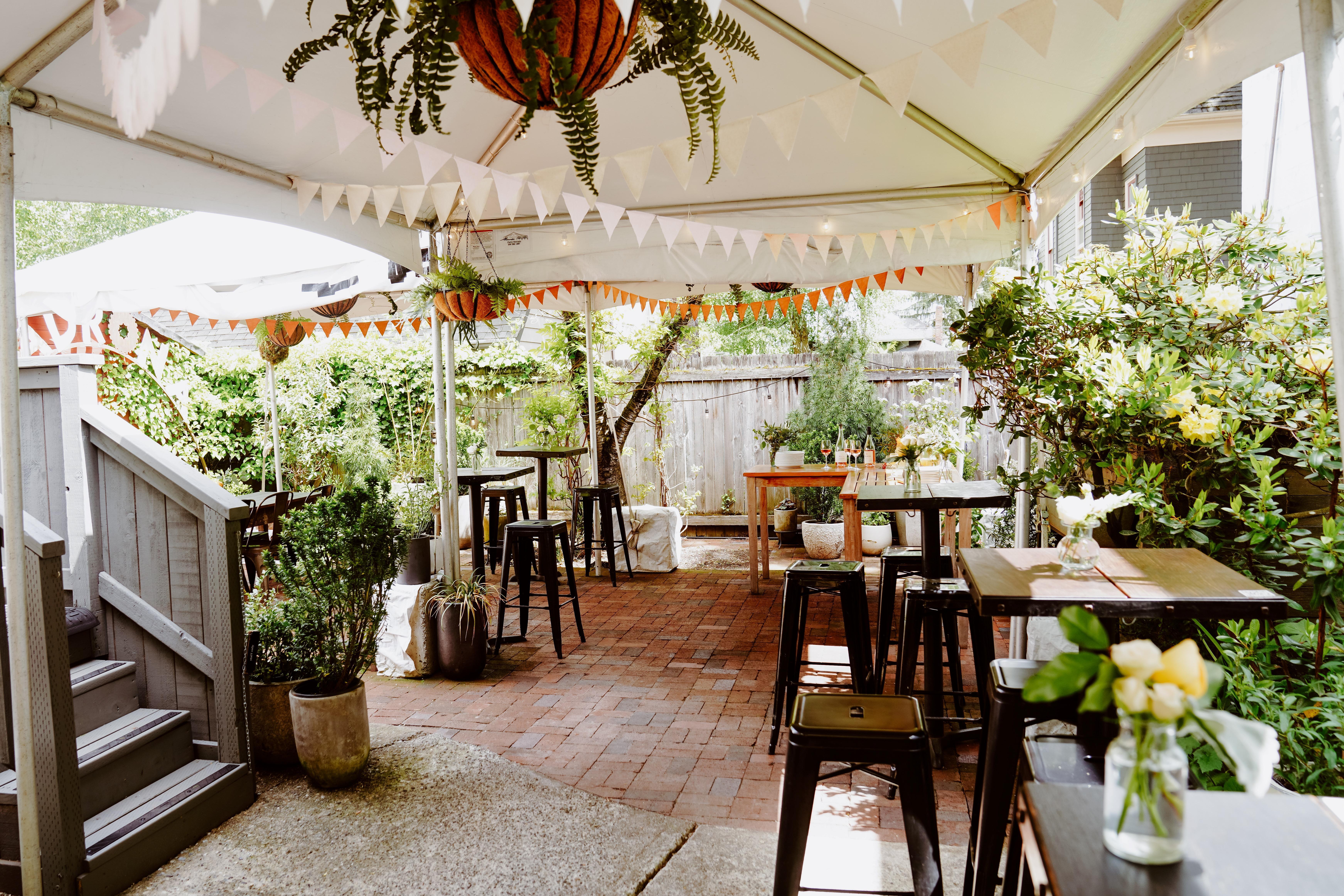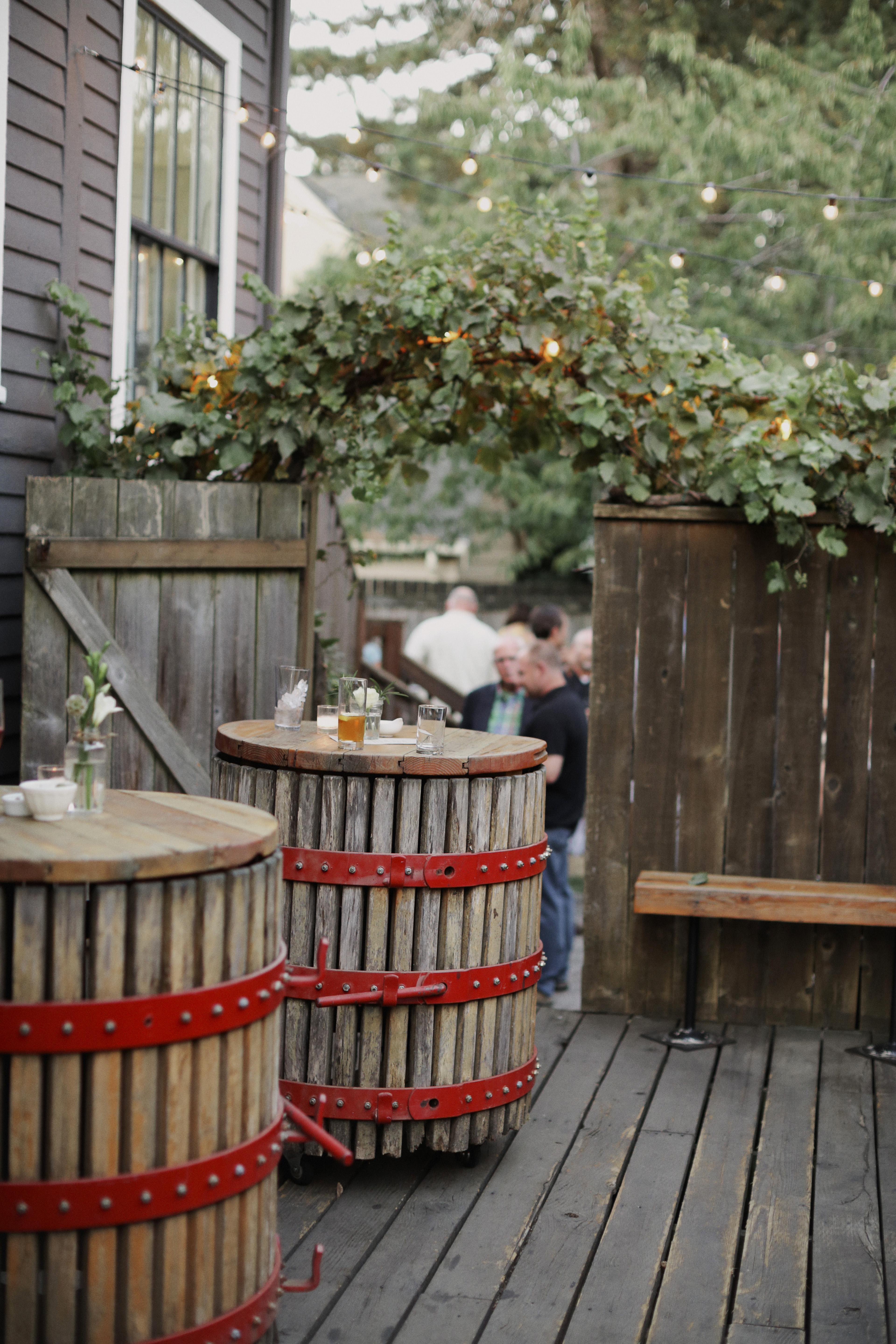 Tucked away and serene, the Back Patio is great for small gatherings and an extension of our Winegarden or Greenhouse during the warmer months.