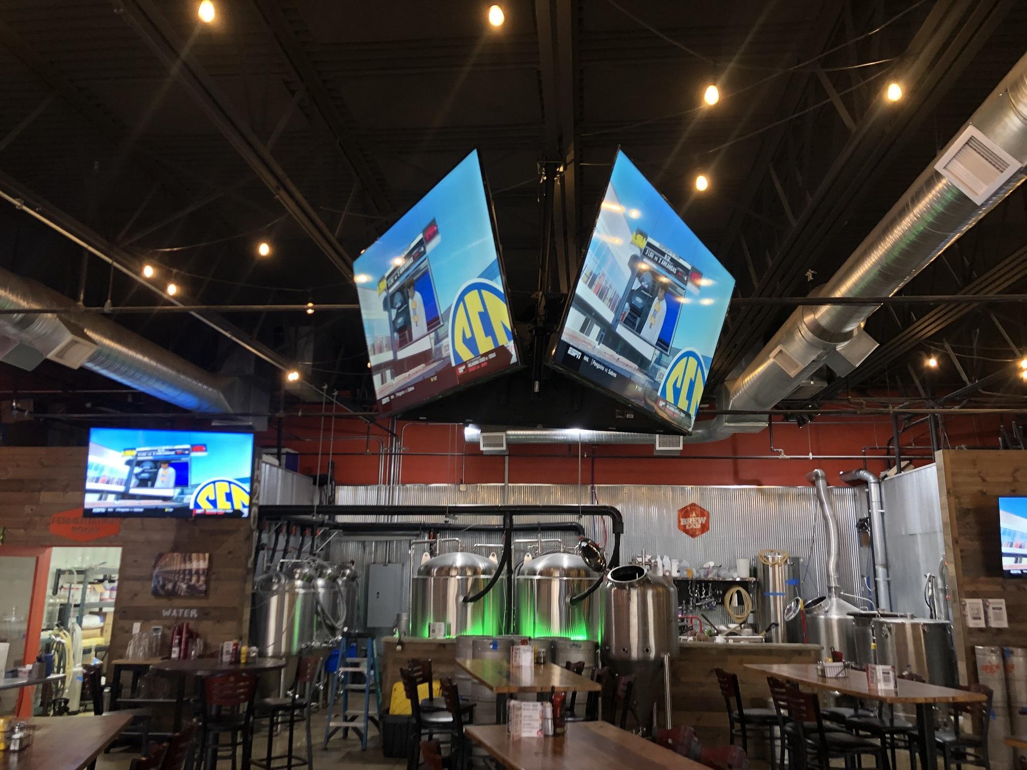 Brew Lab's Tap Room is a spacious, open-concept gathering place designed for both casual get-togethers and large-scale events. Outfitted with multiple big-screen TVs, a projection screen, and full audio-visual capabilities—including a microphone and stage—it's ready for anything from sports watch parties to live entertainment or corporate presentations. Behind the bar, your group will enjoy a full selection of craft beer, cocktails, and more, served by a dedicated bartender and service team.