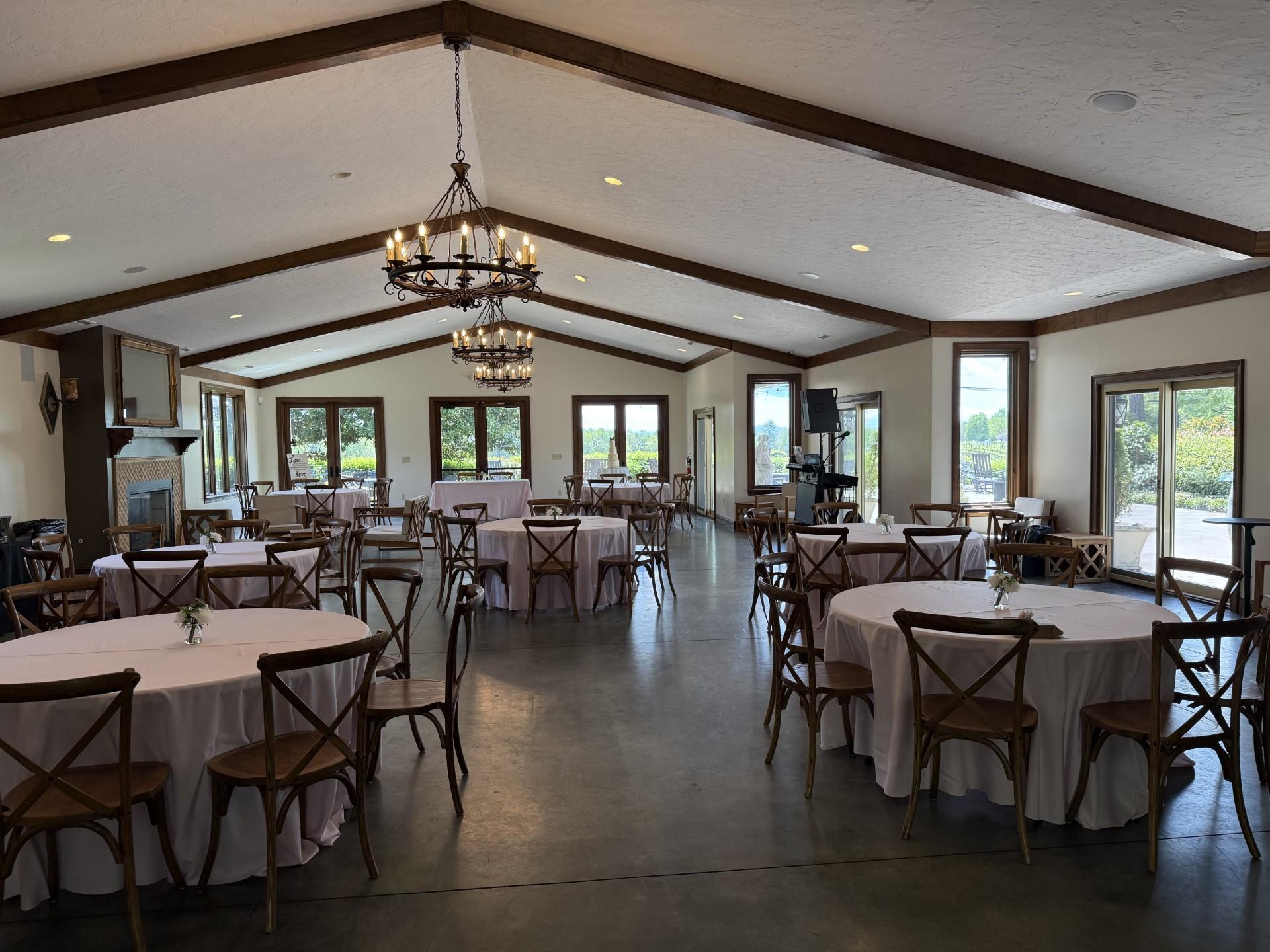 Standard tables and chairs Outdoor ceremony and reception site Access for tent rentals Ample parking