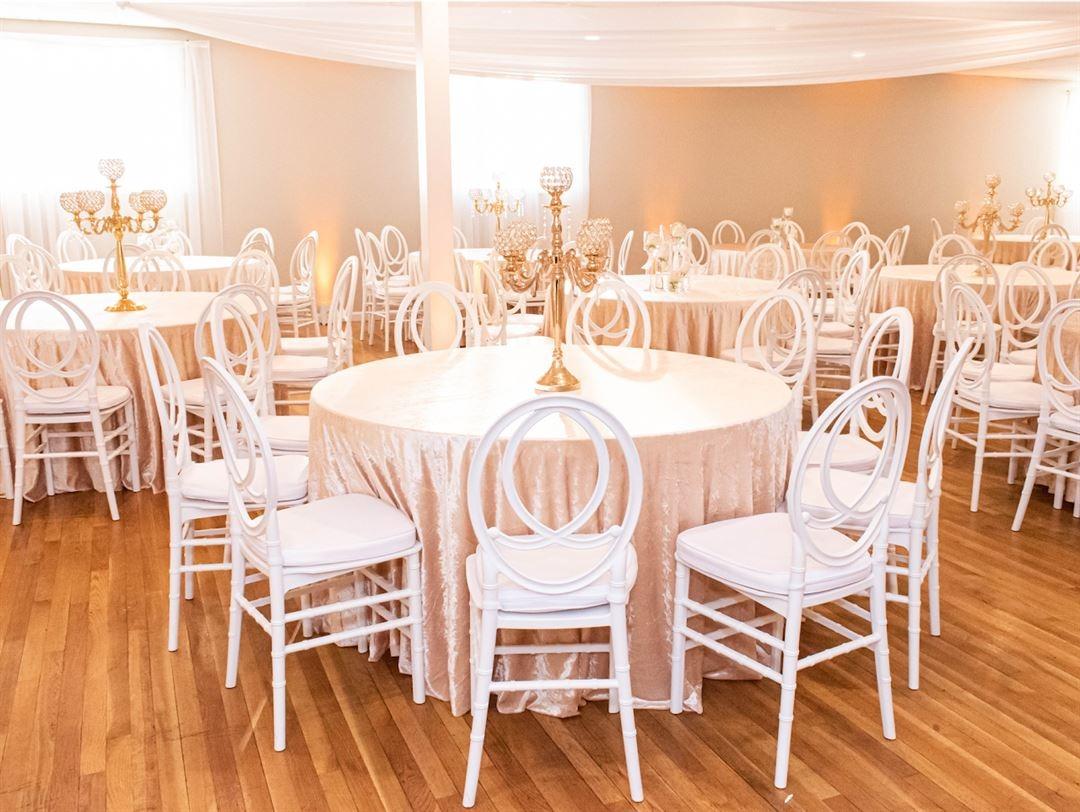 The main function hall at Canton Town Club is a thoughtfully designed space that balances traditional charm with modern convenience. The room features a neutral aesthetic, perfect for customizing with your own floral arrangements and decor. A standout feature of the space is its full accessibility, including a dedicated ramp to ensure all loved ones can join the celebration with ease. From the polished flooring to the flexible layout options, the hall is specifically tailored to host seamless transitions from a heartfelt seated dinner to an evening of dancing and joy.