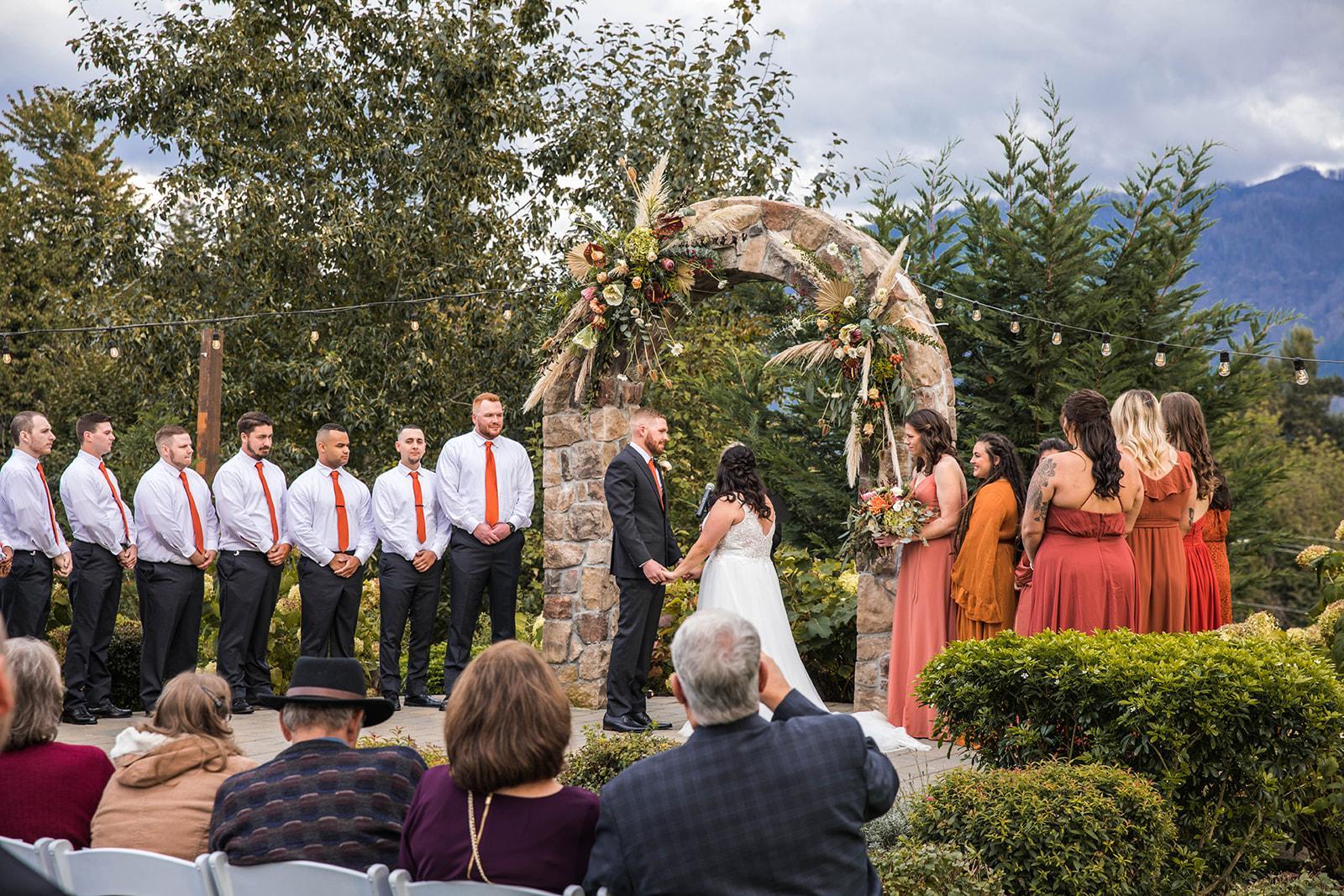 Cape Horn Estate Venue has an amazing view and setting overlooking the Columbia Gorge mountain and only 45 minutes from Portland Right of HWY 14. Our venue can host up to 300 guests. Tables, Chairs, and Venue Rental for 12 hours. Exclusive use of the entire venue New Ceremony area with Pavers and Arch Stone background of the Columbia Gorge Mountains. Outdoor reception area -Seating for up to 300 guests with two Wood Arbors Two outdoor patios, Two Water Features 2 Fire Pits, Professional Landscaping Creekside, Lawn game area Includes two indoor buildings: The Grange seats up to 180 and the Skamania House seats up to 75. 300 white wedding chairs for indoors & outdoors Use of the Bridal Suite and Groom Suite The Skamania House Seats up to 75 people 8 round outdoor patio tables 18-foot-long bar and 8 bar stools Full size side by side refrigerator freezer Climate controlled wine storage Cocktail standing reception - up 100 people. View of the Columbia Gorge mountains from the bar