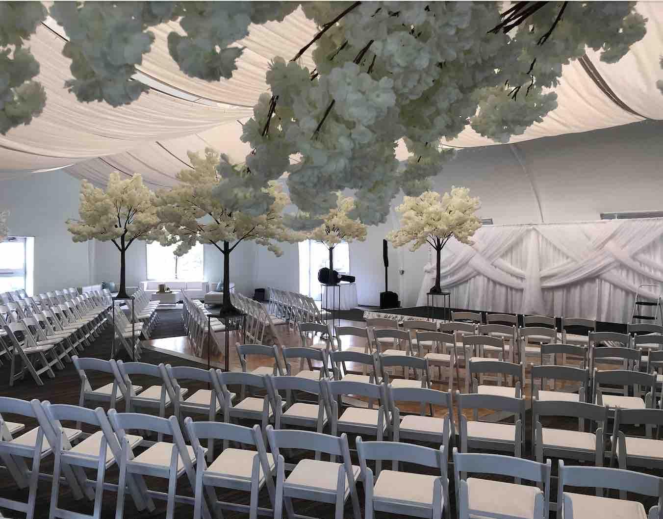 The pavilion is a very large and spacious event space. With ceiling drapery and twinkle lights it can be turned into the perfect event space for any occasion.