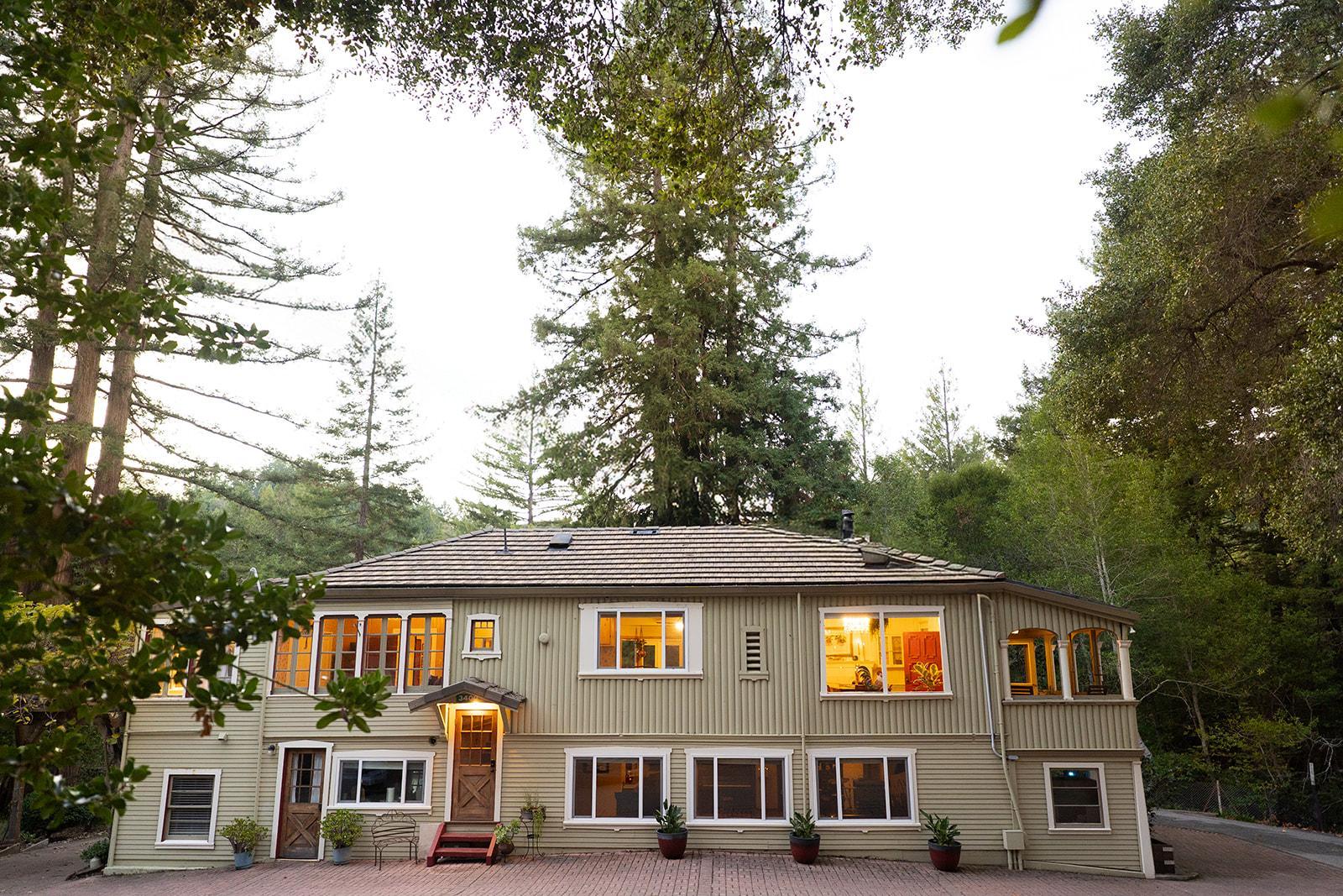 A historic redwood retreat for intimate gatherings, shared meals, and meaningful time together.