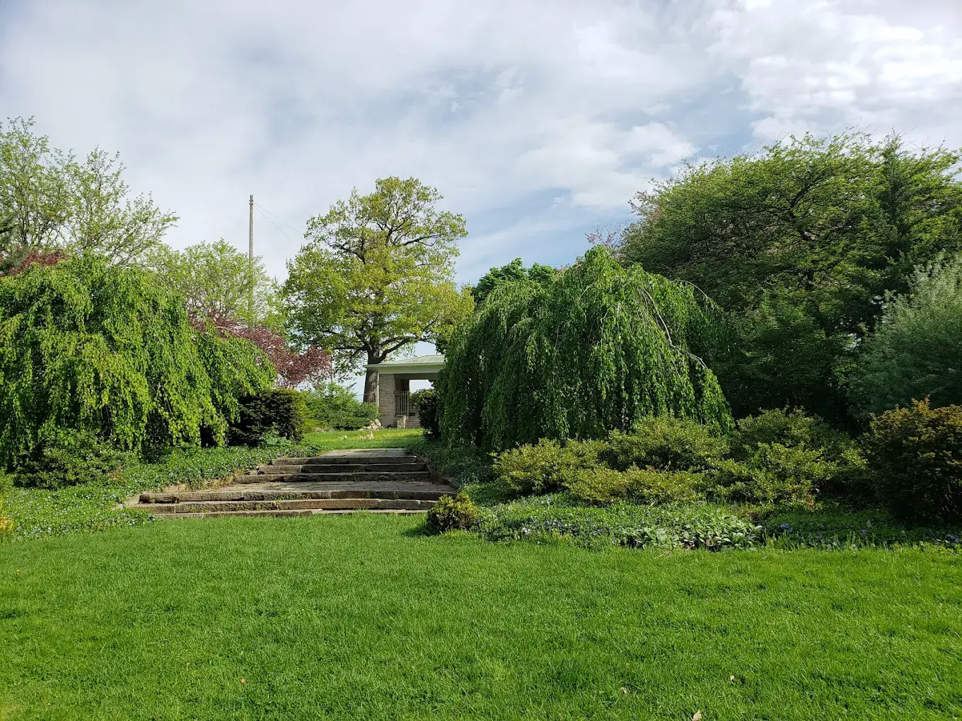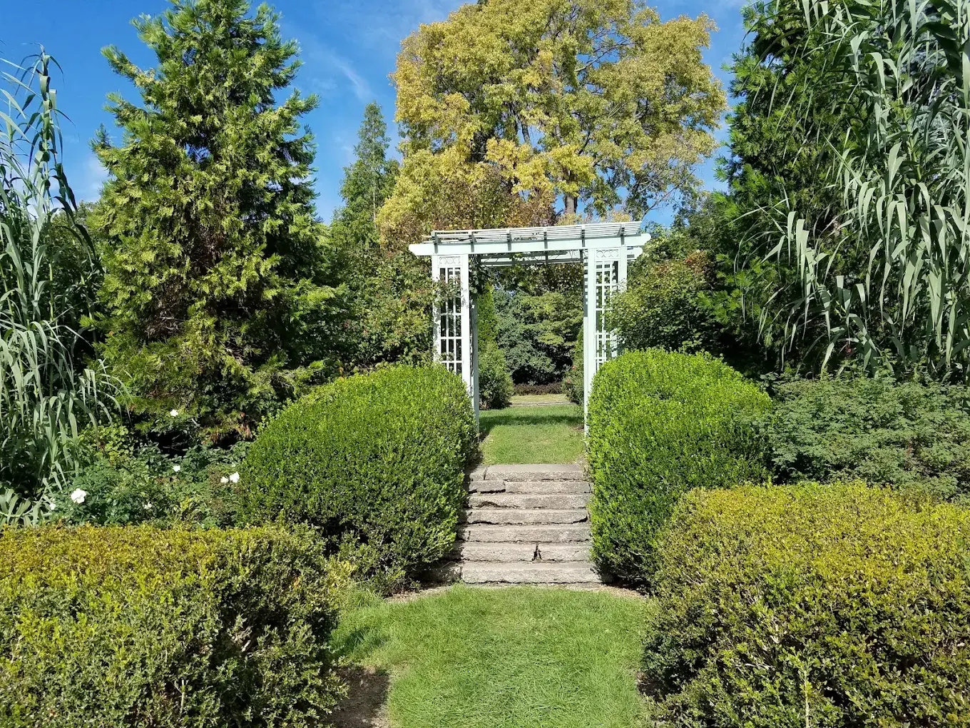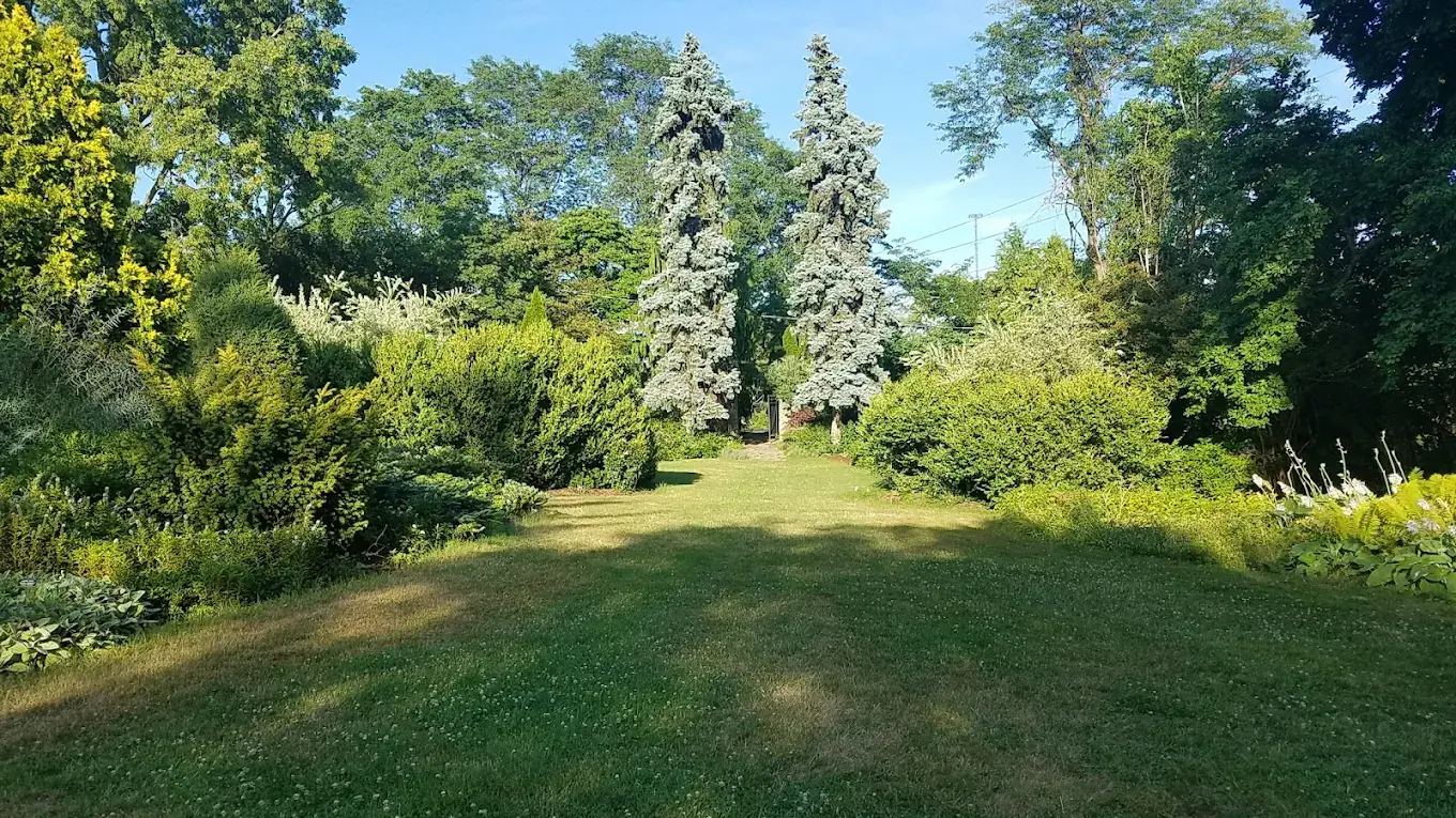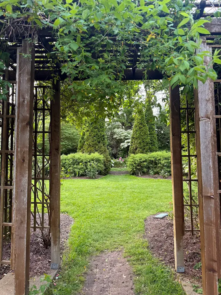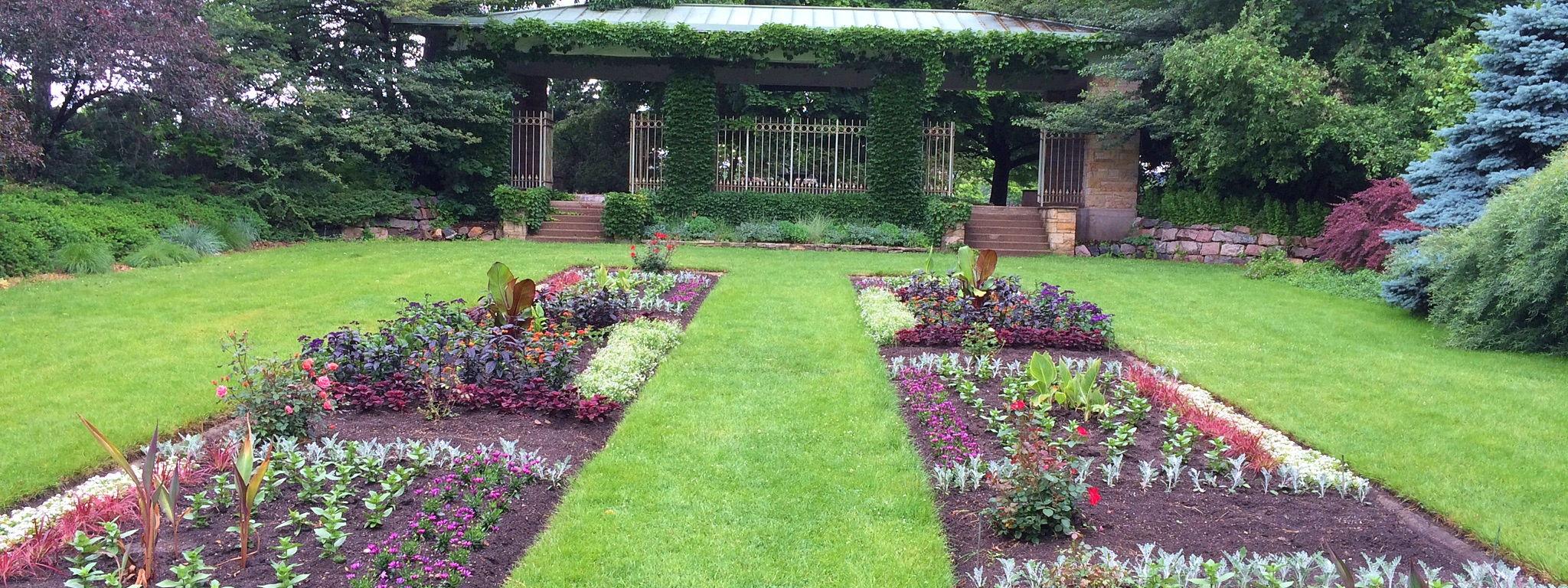 The gardens offer a variety of scenic vignettes for your celebration. The formal wedding site features a lush lawn framed by manicured hedges and a diverse array of annuals and perennials, including exotic hibiscus and banana trees. For a truly unique atmosphere, the Scott Sunken Garden provides an Italian-style walled sanctuary complete with a central lawn and historic architectural details. A charming wooden pavilion provides a sheltered area for light refreshments or shade, while park benches and picnic tables are scattered throughout the grounds to invite guests to linger amidst the scent of peonies and irises.