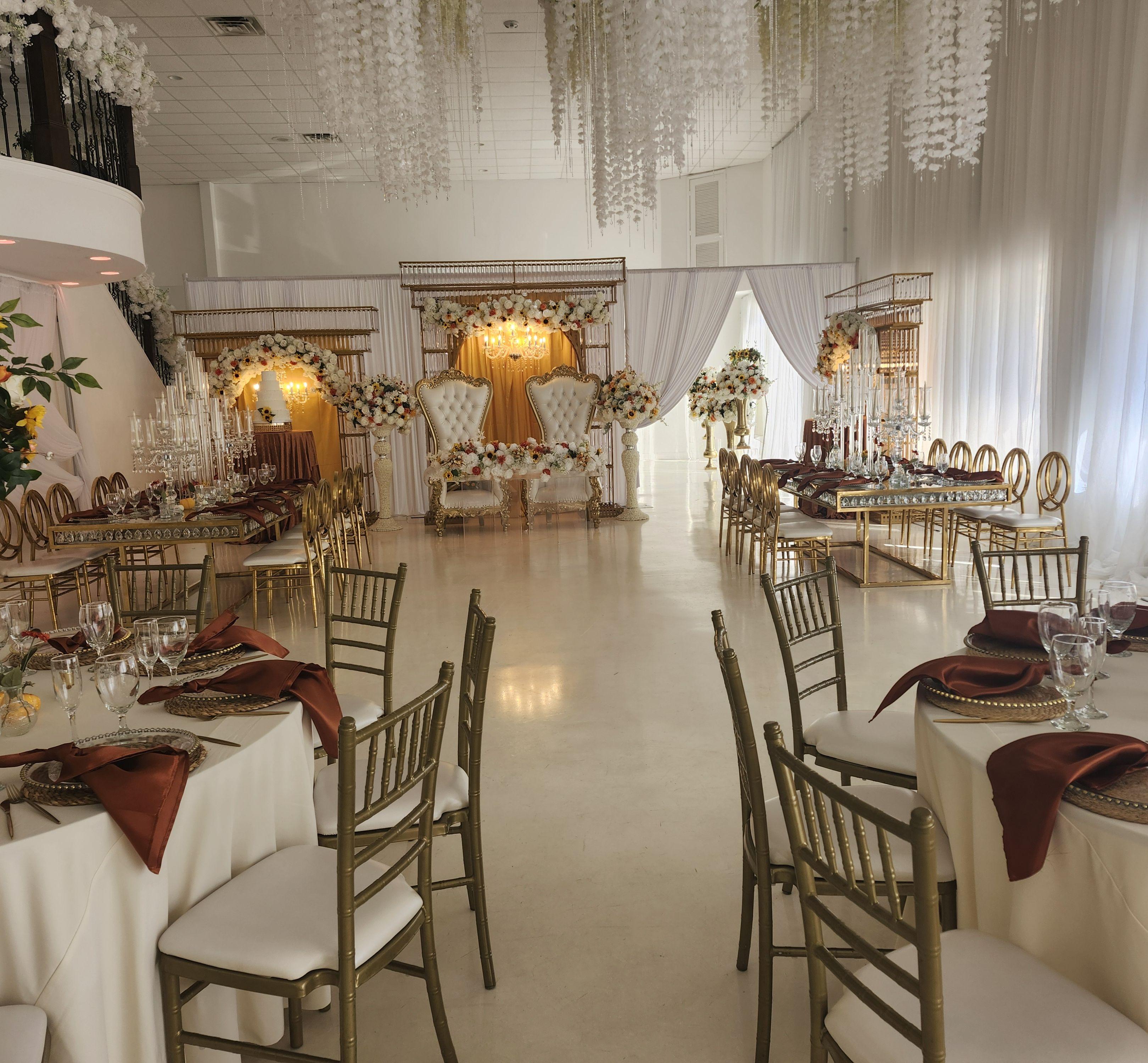 Double Staircase–Make an entrance that will wow your guests Picture Area–A space perfect for photos to capture every memory Cocktail Area–Ideal for mingling and pre-event gatherings Second Floor Suites–Private Bridal and Groom Suites for getting ready and relax Professional Service–Our experienced servers and bartenders ensure seamless event flow and top-notch hospitality Full Décor Included–From elegant table settings and luxurious linens to beautiful centerpieces, lighting, and ambient touches