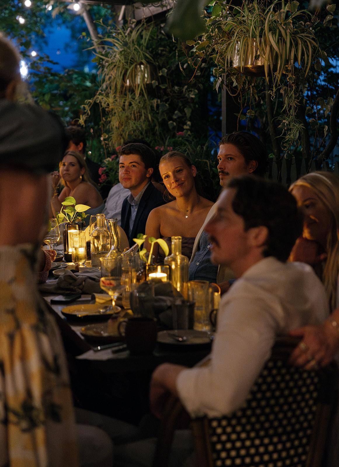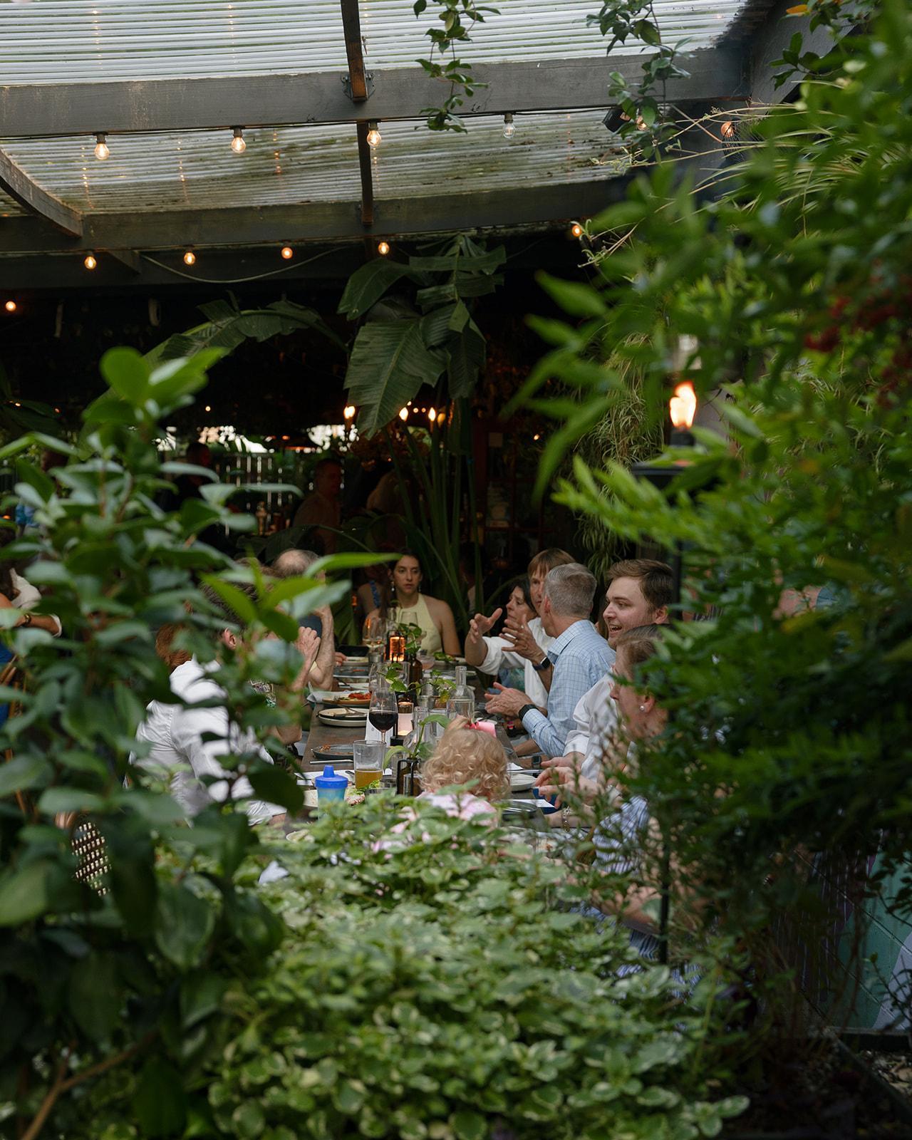 Surrounded by lush, plant-filled greenery, twinkling lights, and natural textures, the garden creates a warm, inviting atmosphere that feels both elevated and personal—perfect for couples who value meaningful moments over grand scale.