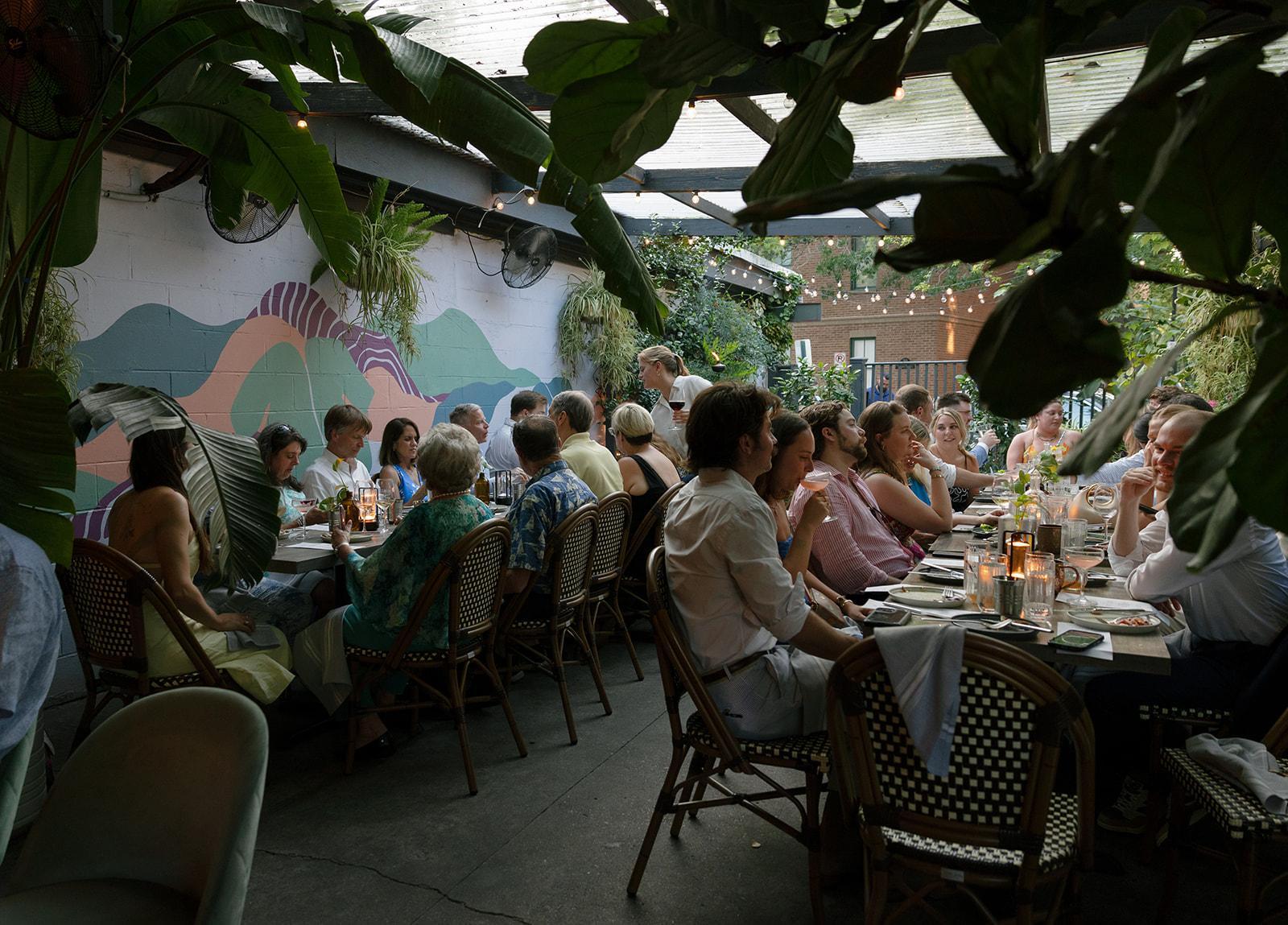 Weddings in the Coterie Garden offer an intimate, romantic setting tucked into the heart of downtown Charleston. Surrounded by lush, plant-filled greenery, twinkling lights, and natural textures, the garden creates a warm, inviting atmosphere that feels both elevated and personal. Our culinary experience is rooted in artisanal food and drink, featuring thoughtfully sourced ingredients, seasonal menus, and handcrafted cocktails made with fresh juices, house-made infusions, and curated boutique wines. Whether you envision an elegant seated dinner or a relaxed cocktail-style celebration, Coterie provides a beautiful backdrop for a wedding that feels authentic, refined, and unforgettable.