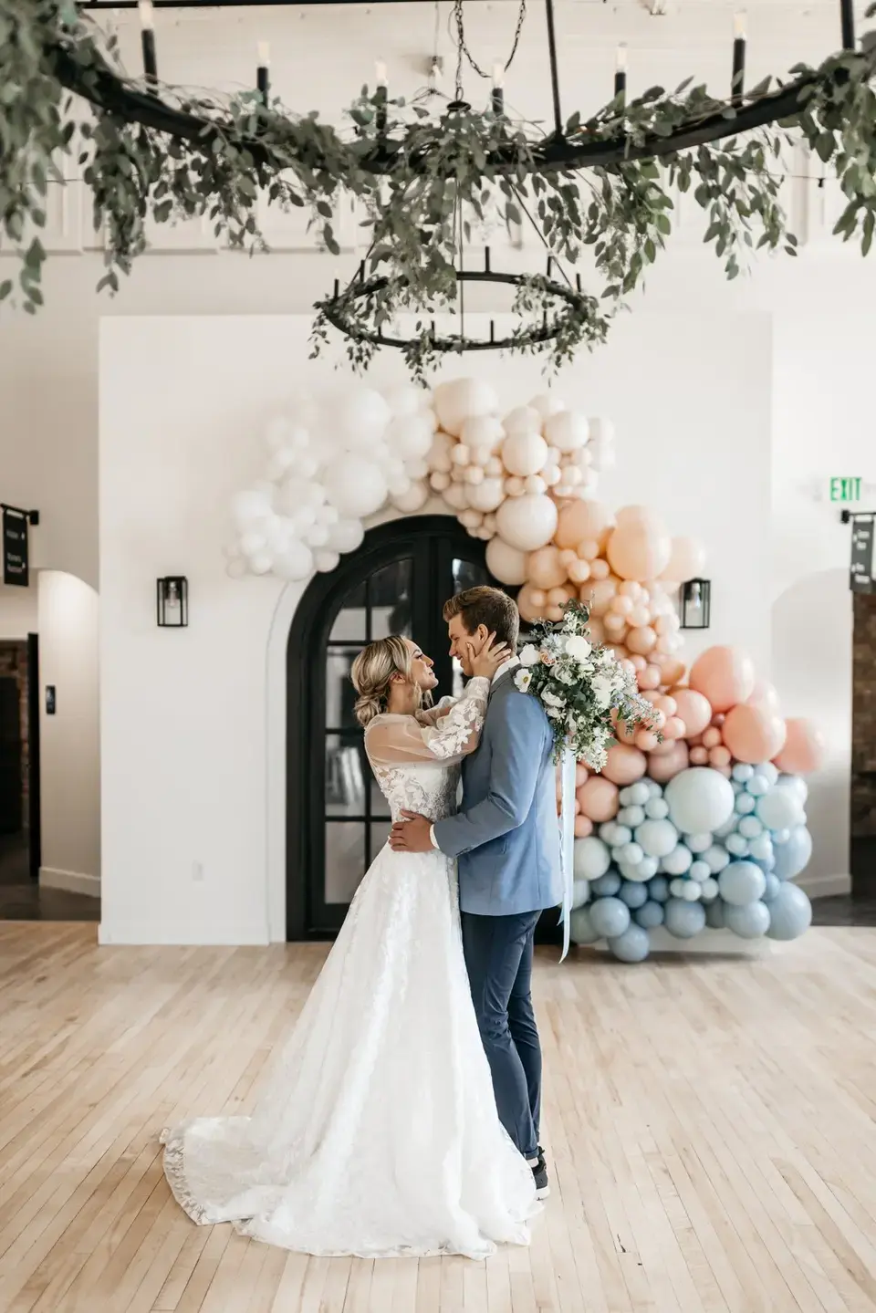 Crescent Hall is a industrial-style wedding venue located in a renovated historic building in Sandy, Utah. With a beautiful open ballroom and a balcony overlooking the space, couples can host both intimate and extravagant celebrations. Defined by elegant arched windows and historic art deco details, the facility allows plenty of daylight to cast a radiant glow over the happy couple and their guests.