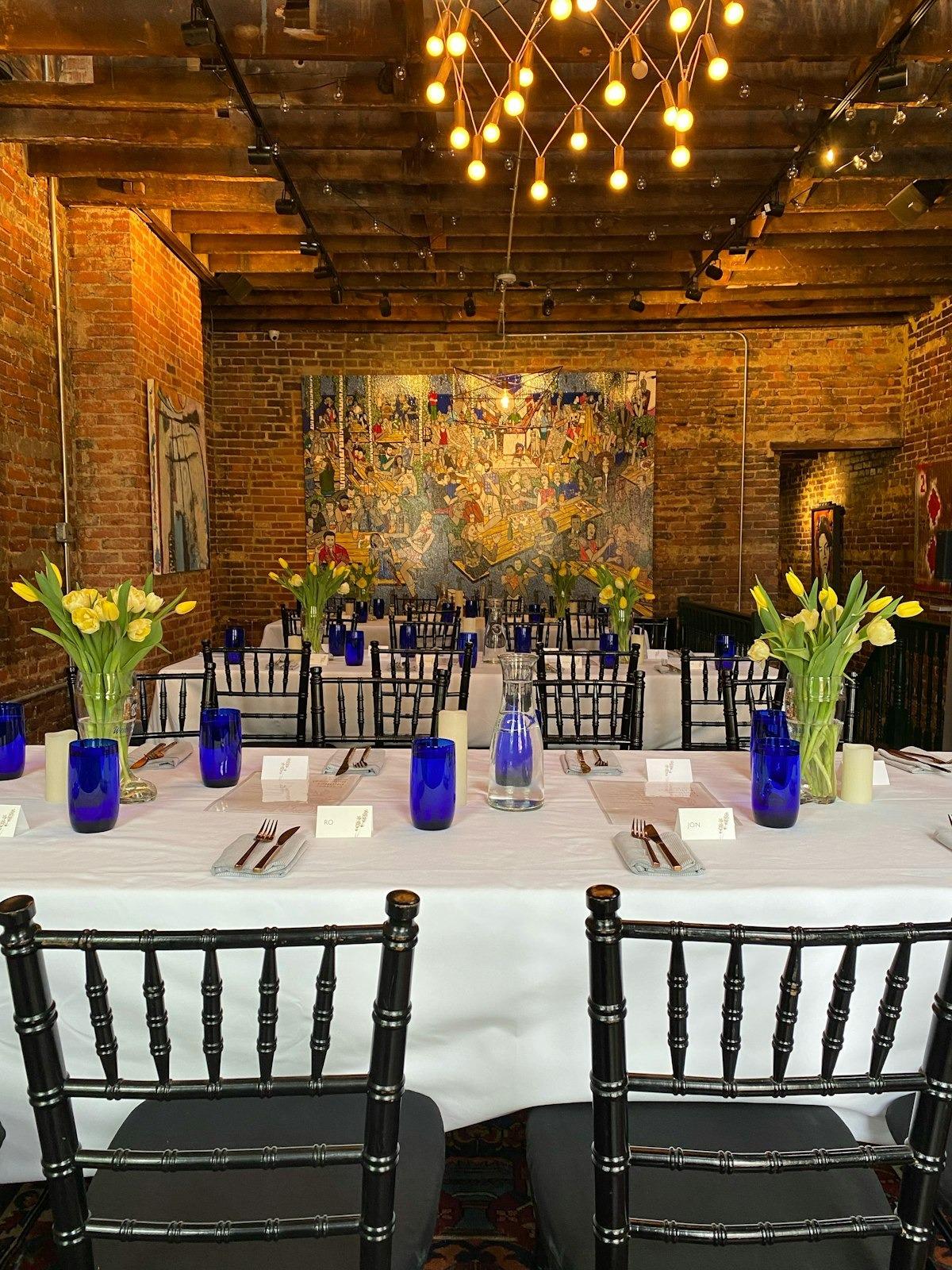 Welcome to the Loft, the perfect space for an intimate seated meal or a lively reception! The Loft can host up to 60 guests for a standing reception, or 40 guests for a seated meal. The food and beverage minimum is $3,000, and the venue rental fee is $500. Curate your beverage menus, bring any additional decor, and make the space your own!