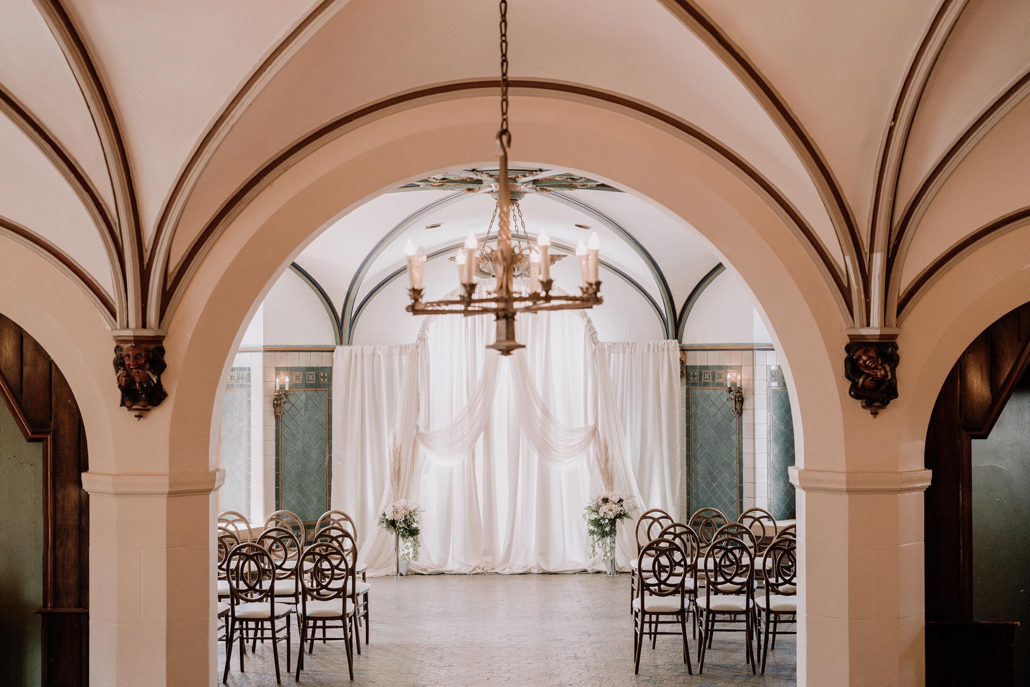 TIMING: -4 Hour Event Rental -4 Hour Set Up + 1/2 Hour Take Down Allowance | SPECIAL ROOM FEATURES: -Unique Hexagonal-shaped Room -Historical Charm -Hand Carved Architectural Details From Paris -Large Austrian Tiled Murals | EVENT AMENITIES: -Furnished Outdoor Patio -Bride and Groom Suite -Ample Parking Lot -Table and Chairs for All Guests -Bar Staff -On-site Event Manager for the Duration of Your Event